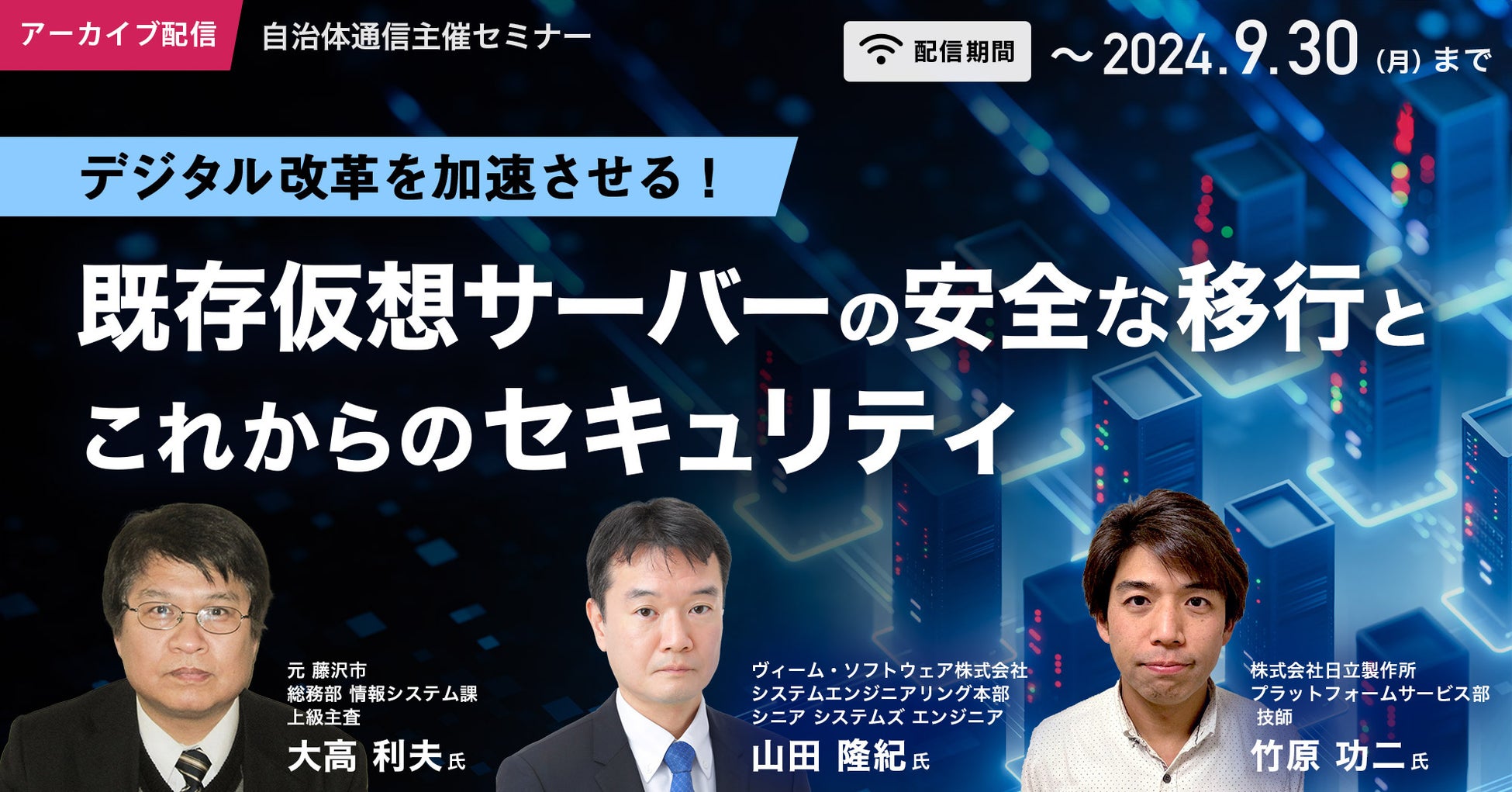 【期間限定・無料アーカイブ配信決定!】自治体通信主催セミナー「デジタル改革を加速させる!既存仮想サーバーの安全な移行とこれからのセキュリティ」