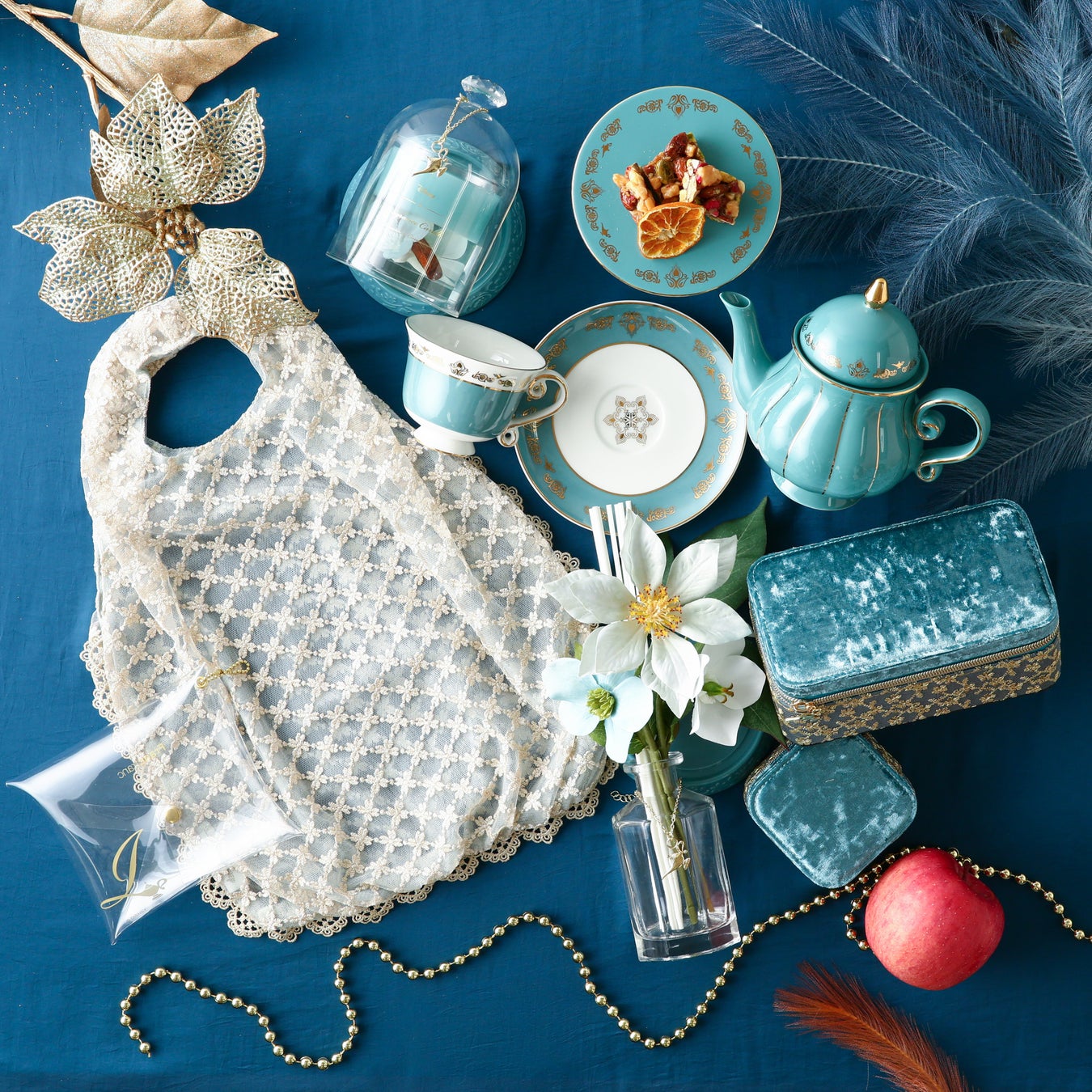 ティーウェアシリーズやクッション、トラベルジュエリーボックスでは、海を連想させるシェルモチーフを取り入れました。