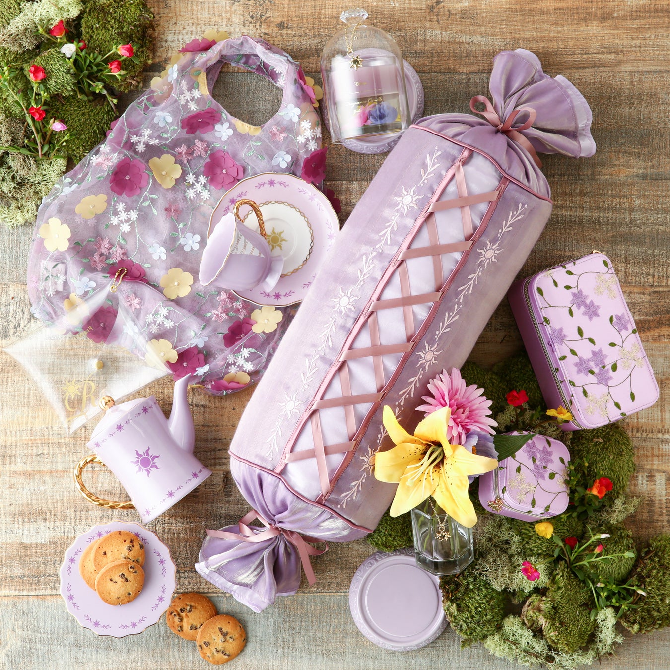 ボルスター型のクッションは、ラプンツェルの衣装をモチーフに、レースアップや刺繍を施したこだわりのデザインです。