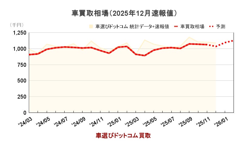 2025年の中古車買取相場は、好調な水準を維持したまま秋の需要期を迎え、9月以降には過去最高値を記録しました。車選びドットコムが集計した独自データによると、年末にかけては例年通り一時的な落ち着きが見られるものの、その後は春先の中古車需要に備えた仕入れ強化の動きが進み、買取相場は再び高水準で推移する可能性が高いと見ています。