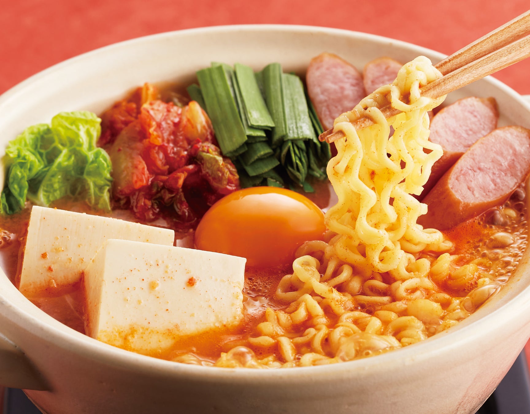 「旨辛スープのキムチチゲ定食(サリ麺入り)」/799円(税込878円)