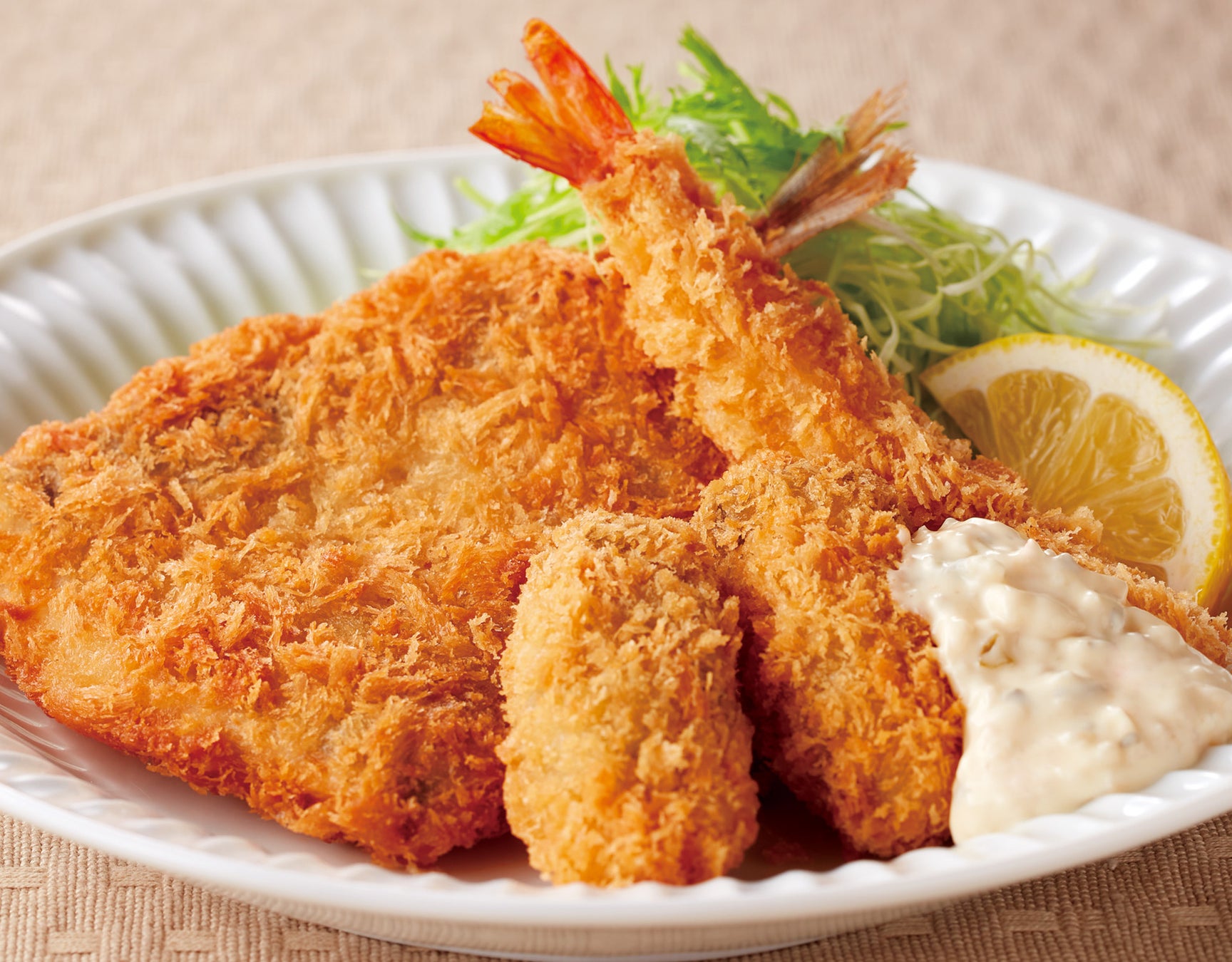 「海鮮フライ盛り合わせ定食(広島県産かき使用)」/899円(税込988円)*TAKEOUT可