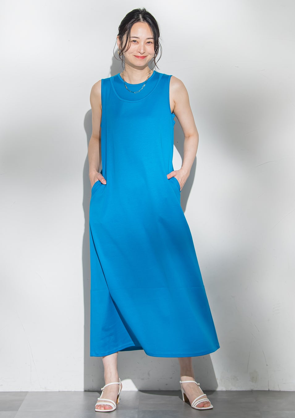 5月のサマーフェア(5月13日(水)〜24日(日)開催)にてお渡しするワンピースの受注会も同時開催いたします。「アメリカンスリーブのタンクトップとノースリーブワンピースのセットアイテム」と「キーホールネックワンピースとタンクトップのセットアイテム」の2型をご用意しております。フライス編みを採用することで程よい張り感があり、体のラインを拾いにくく肌離れもいいので、暑い着心地が良く、綿100%なのでお肌にも優しく、手洗いOKの嬉しいイージーケア素材です。