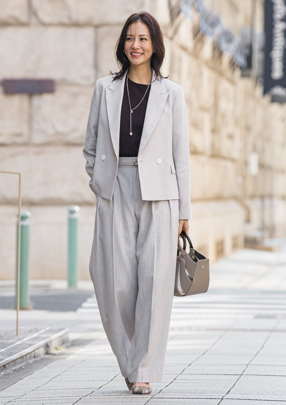 今季らしいリネン混素材でこなしたジャケットスタイルは、短丈セットアップで足長効果のある旬顔styleに。春を演出するデニムスタイルも軽やかな素材にアップデートしてNEW カセットを提案。またエアリーなボリュームスカートをアクセントに春の軽さとドラマティック感を提案します。