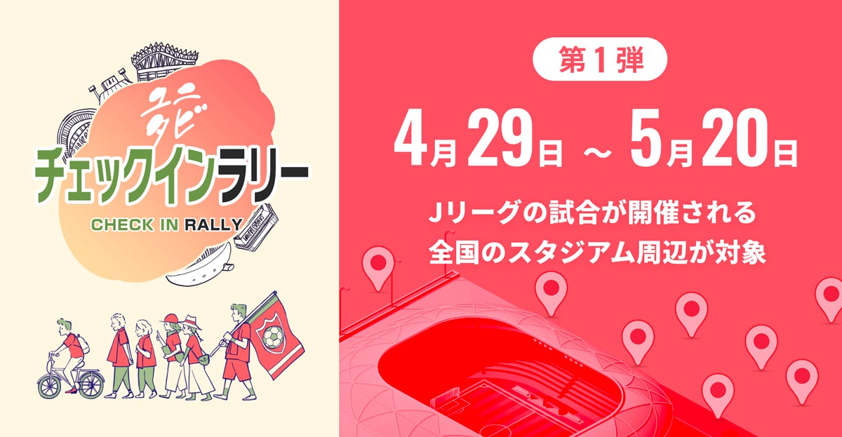 このたびのアプリ内での「チェックイン」機能の提供開始に伴い、4月29日(土・祝)から5月20日(土)までの期間、「チェックインラリーイベント」を開催いたします。