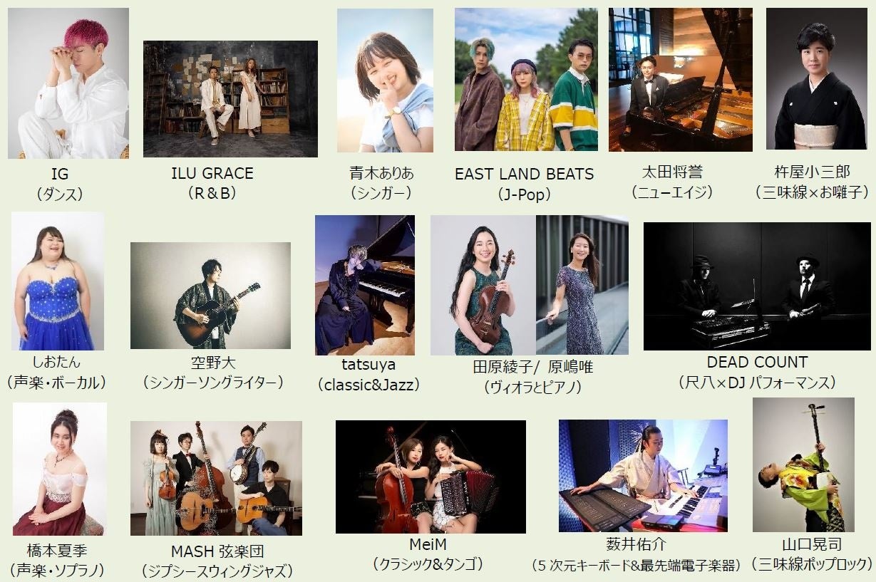 | 【あなたが“NEXTアーティスト”~若手応援プロジェクト~2023】 若手アーティストに出演の機会を提供し、日比谷から世界へ才能を発信することを目的に、エンターテインメント・伝統芸能など、様々な分野のプロフェッショナルが審査員となり”NEXTアーティスト”を選出するプロジェクト。アーティストは広く公募を行い、演出家の宮本亞門さんをはじめとし、この企画の趣旨に賛同した各界で活躍する12名のプロフェッショナルの方々が審査員として参加。2023年は16名が選ばれました。選出されたアーティストには、「Hibiya Festival」への出演のほか、東京ミッドタウン日比谷をはじめとした商業施設やギャラリー、パブリックスペースなど日比谷・銀座の街で表現の機会を創出し、継続的な支援を行います。 〈審査員〉宮本亞門/平原綾香/三浦文彰/牧野アンナ/尾上菊之丞/akane/小名川高弘/栗栖良依/ 入山功一/FISHBOY/花柳源九郎/上山竜治(敬称略) |