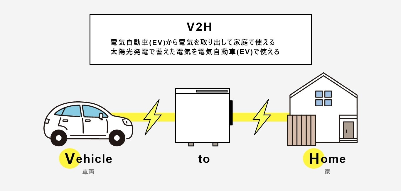 今回カーザロボティクスでは、IKIのガレージ付きプランにEV用充電器を標準搭載し、さらにEV用充電器とV2H(Vehicle to Home)機器のオプション販売を開始いたします。V2Hとは、EVに蓄えられた電力を家庭用に有効活用する考え方のことです。昼間に太陽光で発電した電力をEVに蓄積し、それを夜間に使用することで、再生可能エネルギーを余すところなく活用することができます。これにより、二酸化炭素の排出ゼロを目指すとともに、電気代を節約できるおトクな暮らしをご提案いたします。