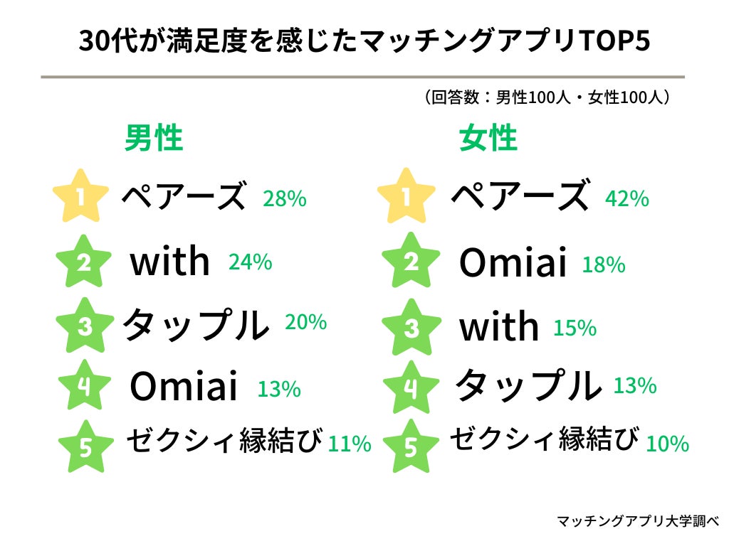 30代が最も満足度を感じたマッチングアプリは「ペアーズ」