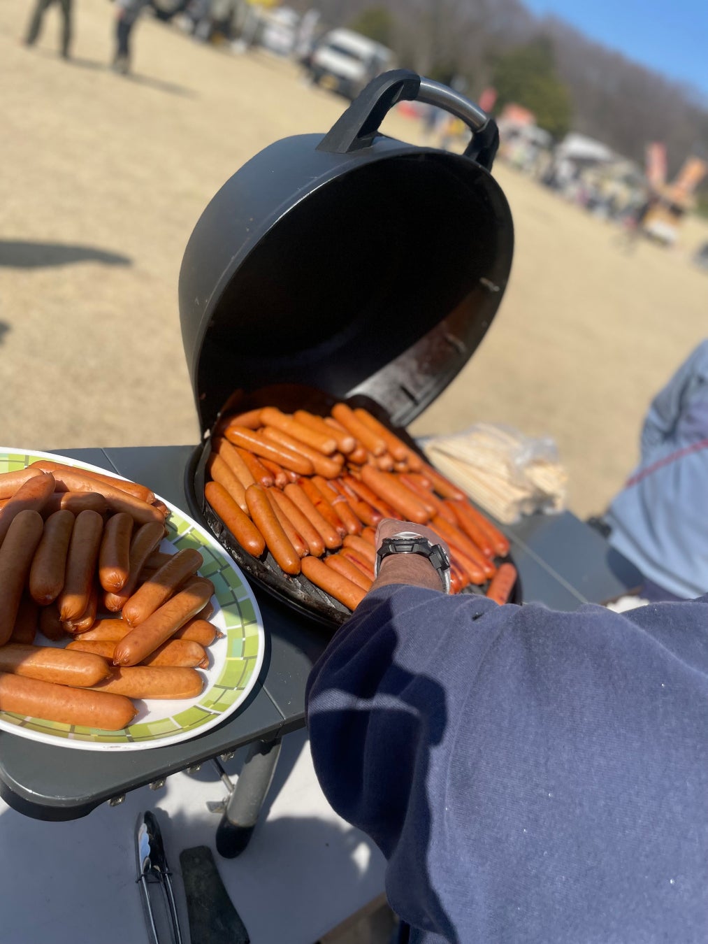 写真の通り、何といってもボリューミーでジューシーなジョンソンビルのソーセージ。屋外で食べるとより一層美味しさが際立ちます。
