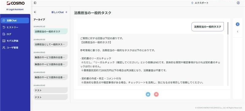 株式会社MILIZE(本社:東京都港区、代表取締役社長:田中 徹、以下「MILIZE」)は、コスモエネルギーホールディングス株式会社(本社:東京都中央区、代表取締役社長:山田 茂、以下「コスモエネルギーホールディングス」)の『AI法務相談ツール』を開発しました。