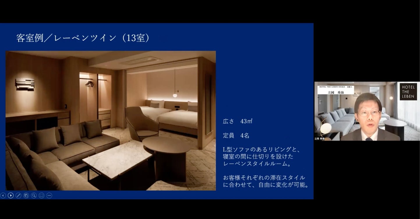「HOTEL THE LEBEN OSAKA」支配人 立岡秀海が、ブランドやホテルの特徴・プラン詳細などを発表