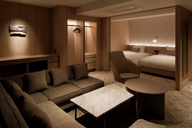 ホテルでも自宅にいるようにくつろいでいただくため、リビングと寝室の境界を分けた客室をご用意しました。