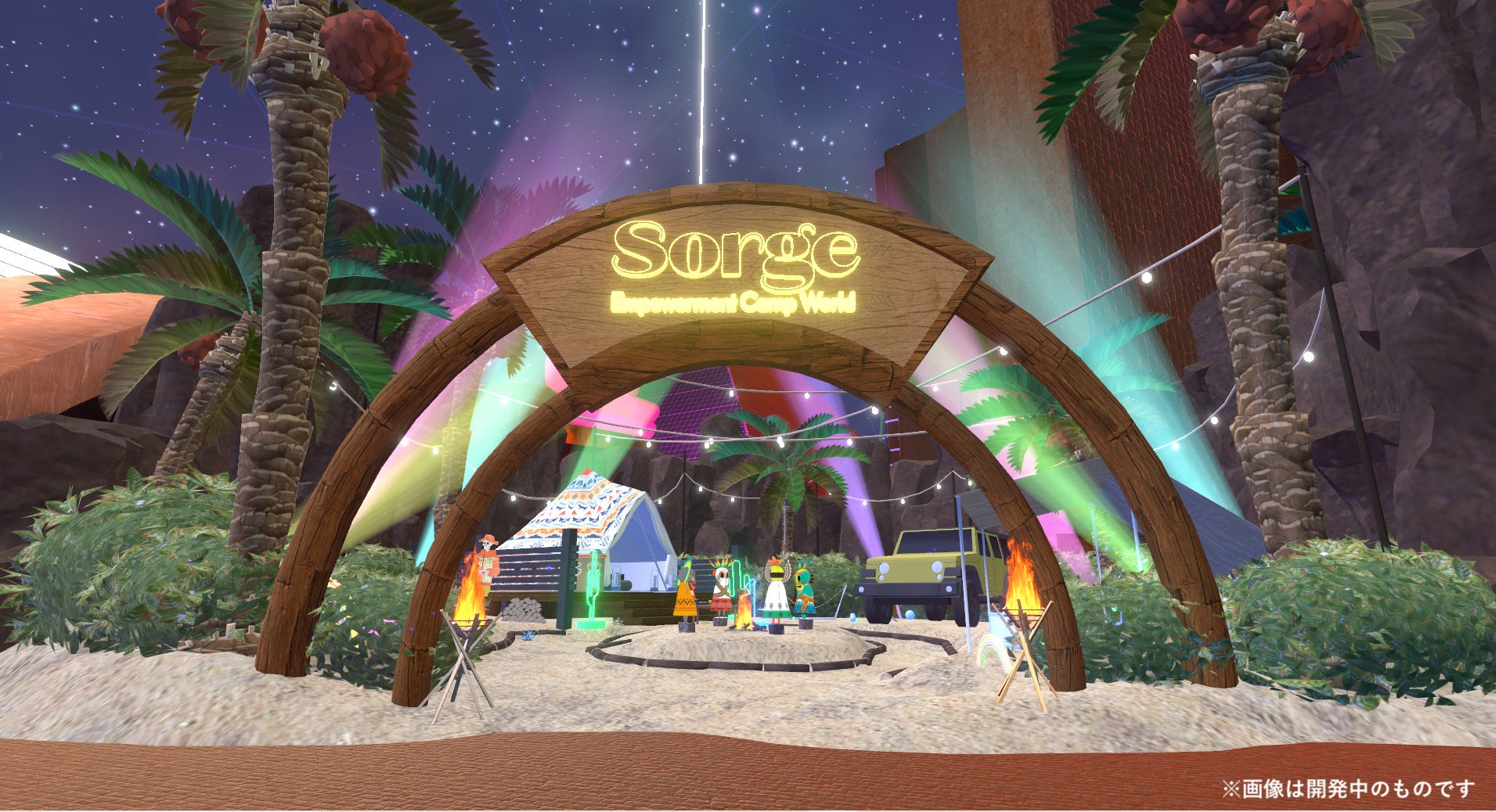 今回「パラリアルラスベガス」内のメインストリートエリアに登場するSorgeのブースでは、大都会ラスベガスのど真ん中で本格的なキャンプができる、メタバースならではの体験を提供します。