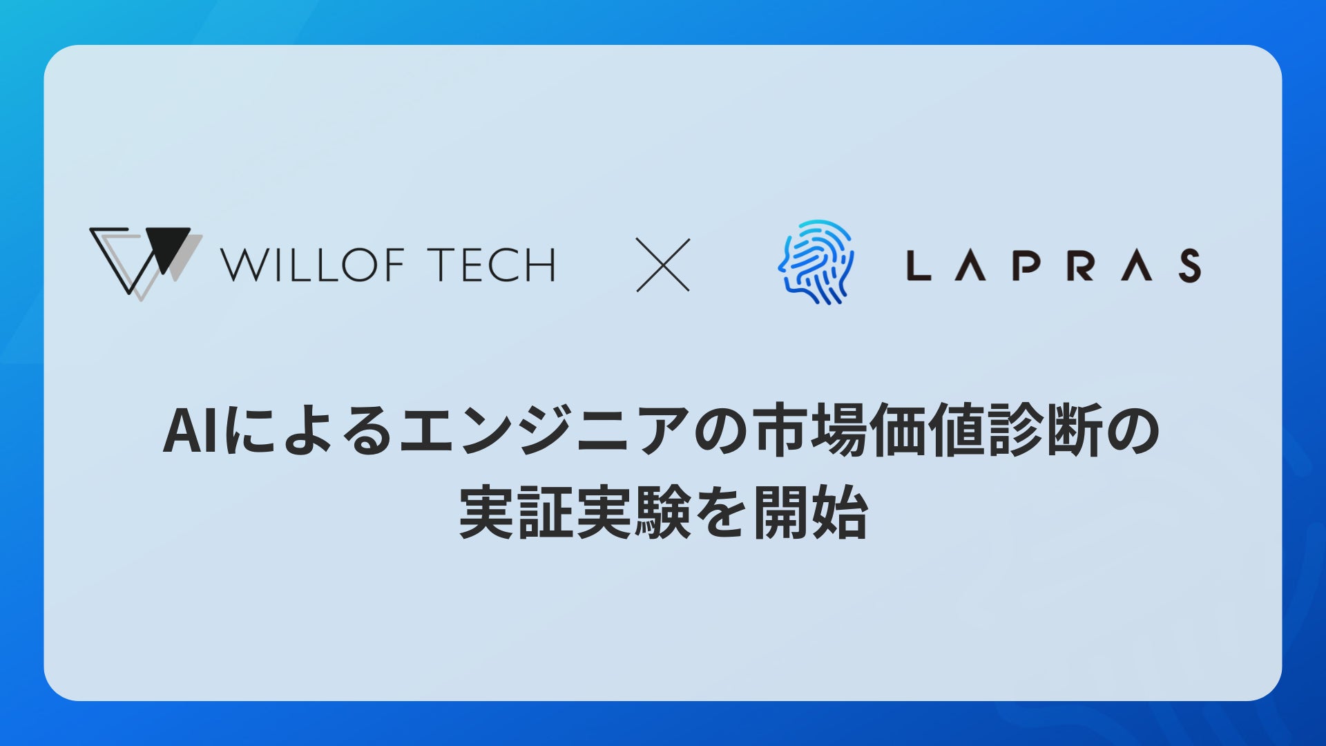 ウィルオブ・ワークとLAPRAS、AIによるエンジニアの市場価値診断の実証実験を開始