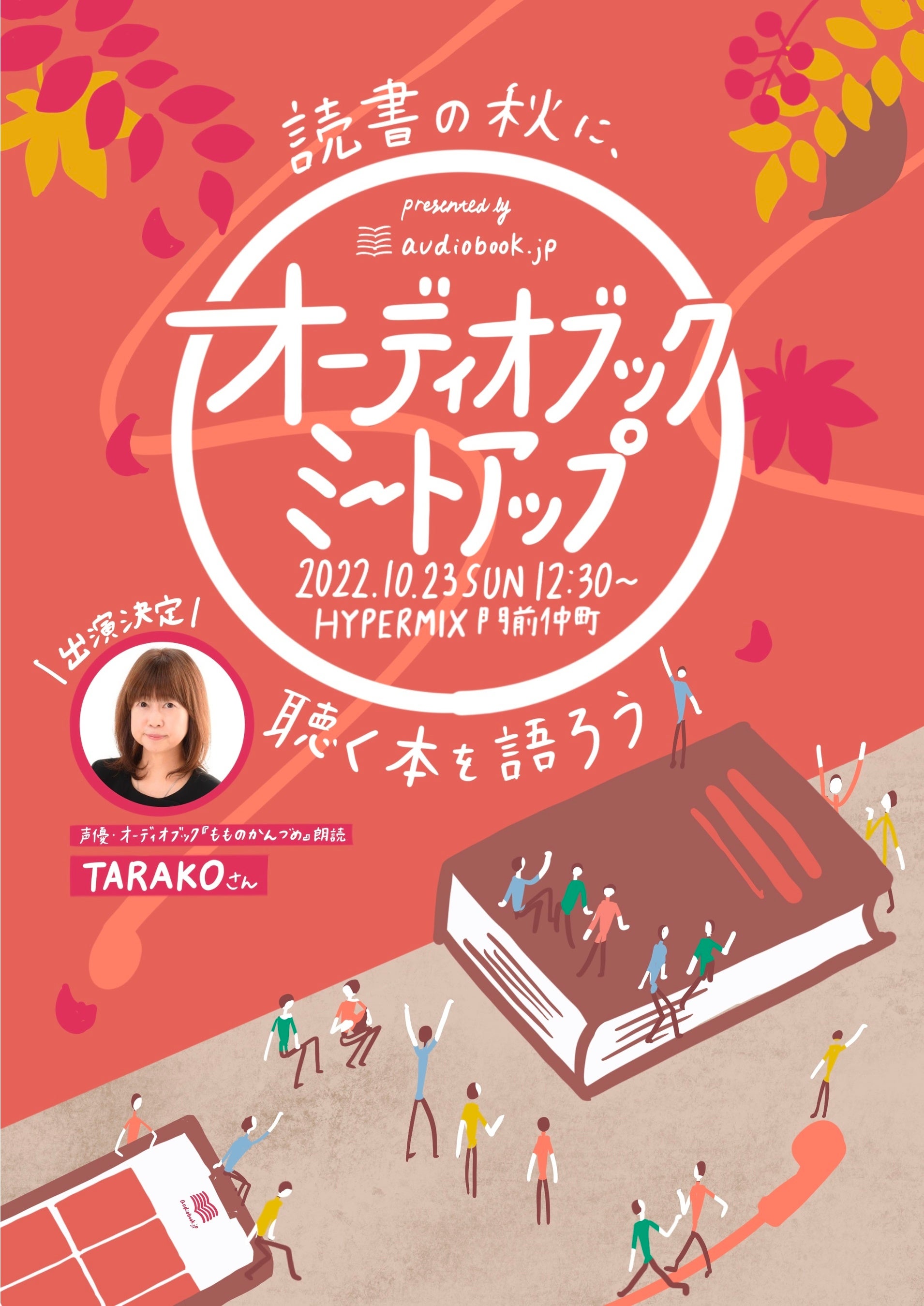 読書の秋にあわせ、史上最大級(※)のオーディオブックユーザーイベント「オーディオブックミートアップ」を10月23日(日)に開催します。イベントには、オーディオブックユーザーを先着で70名招待。アニメ「ちびまる子ちゃん」のまる子役でお馴染みのTARAKOさんをゲストに迎え、オーディオブックの生朗読、ユーザーが選ぶ2022年オーディオブック大賞の発表など、耳で楽しむ新たな読書の魅力を味わいつくす様々な企画を予定しています。