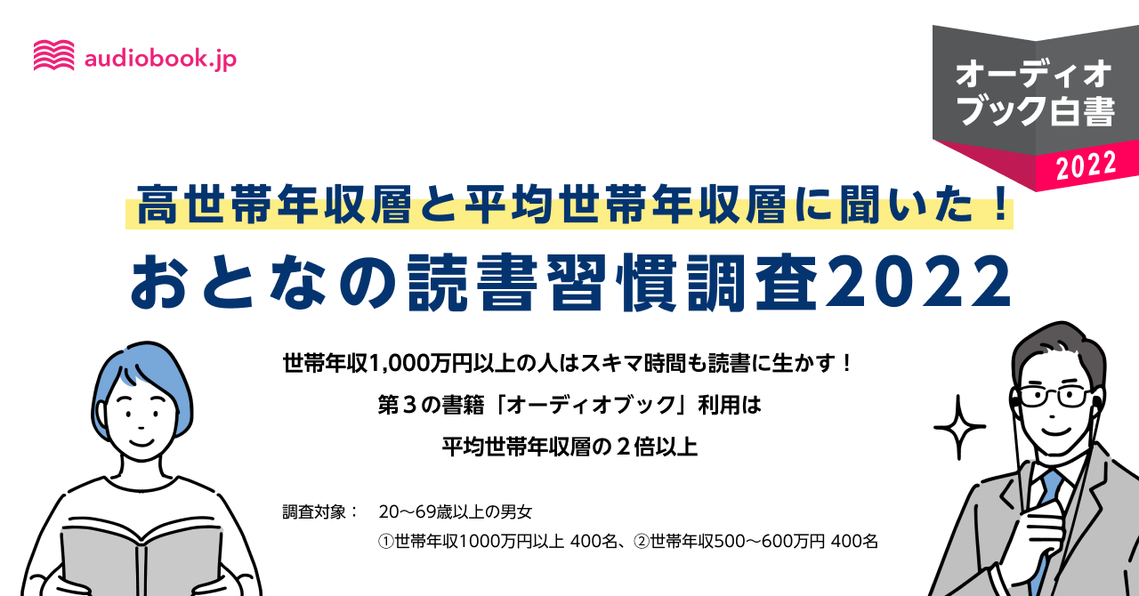 世帯年収1,000万円以上の人はスキマ時間も読書に生かす! 第3の書籍「オーディオブック」利用は平均世帯年収層の2倍以上 <おとなの読書習慣調査2022>