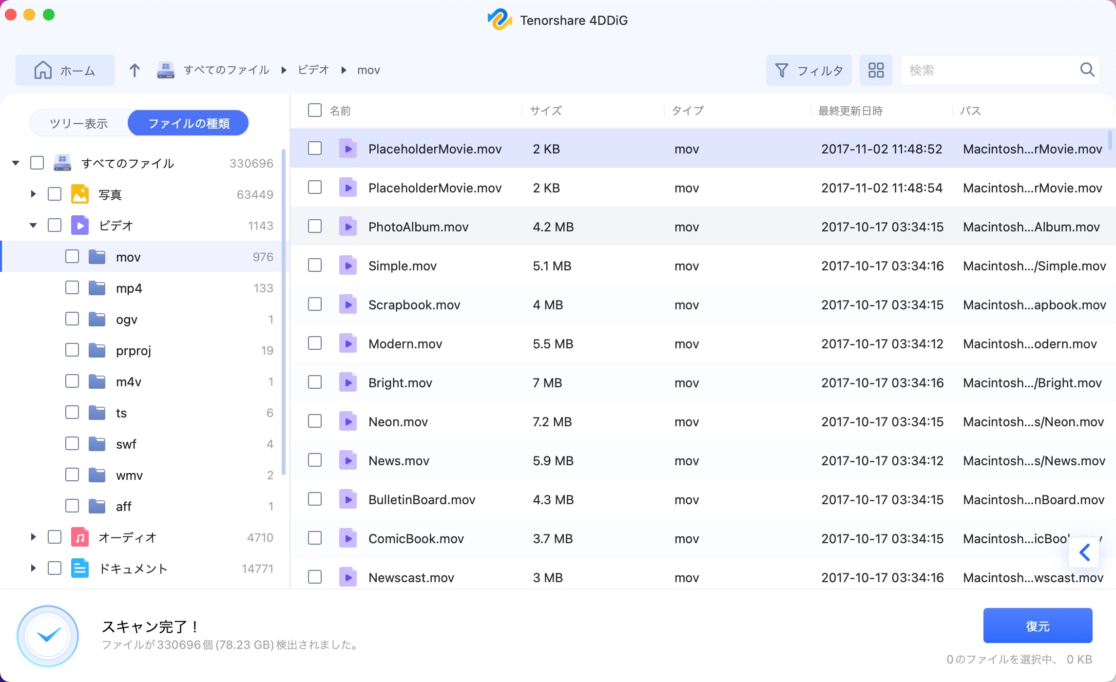 4DDiG復元ソフトでは、簡単操作・高速動作・高い確率で紛失したあらゆるファイルのデータを復元することができます。