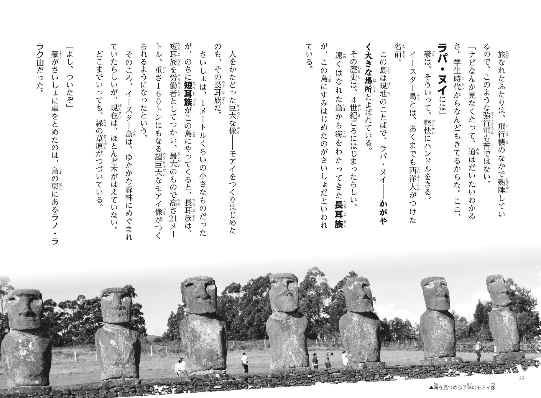 とにかく本のつくりが凝っている。地図も情報も写真もイラストも読み手の興味をぐいぐいひきつける。本内の装丁も写真を背景にするなどすごい力のいれよう。そして、なんといっても文章が読みやすくて、大文字を使った文章の強調も物語に躍動感をもたせ、理解に一役買っている。