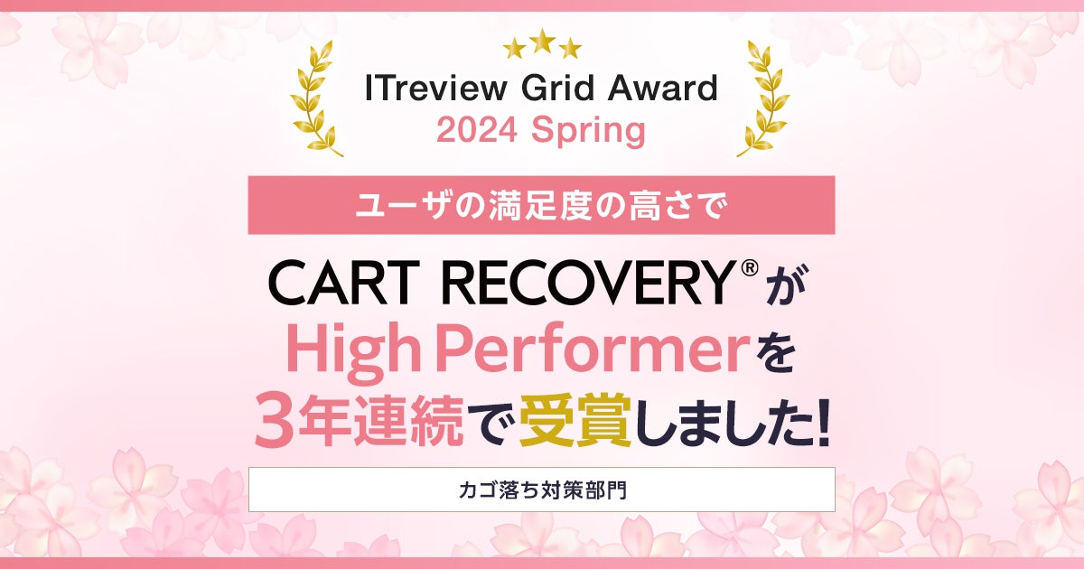 この度「CART RECOVERY®」は、アイティクラウド社主催の「ITreview Grid Award 2024 Spring」において、【満足度】においてユーザーから高い評価を受け、カゴ落ち対策部門で「High Performer」を受賞いたしました!