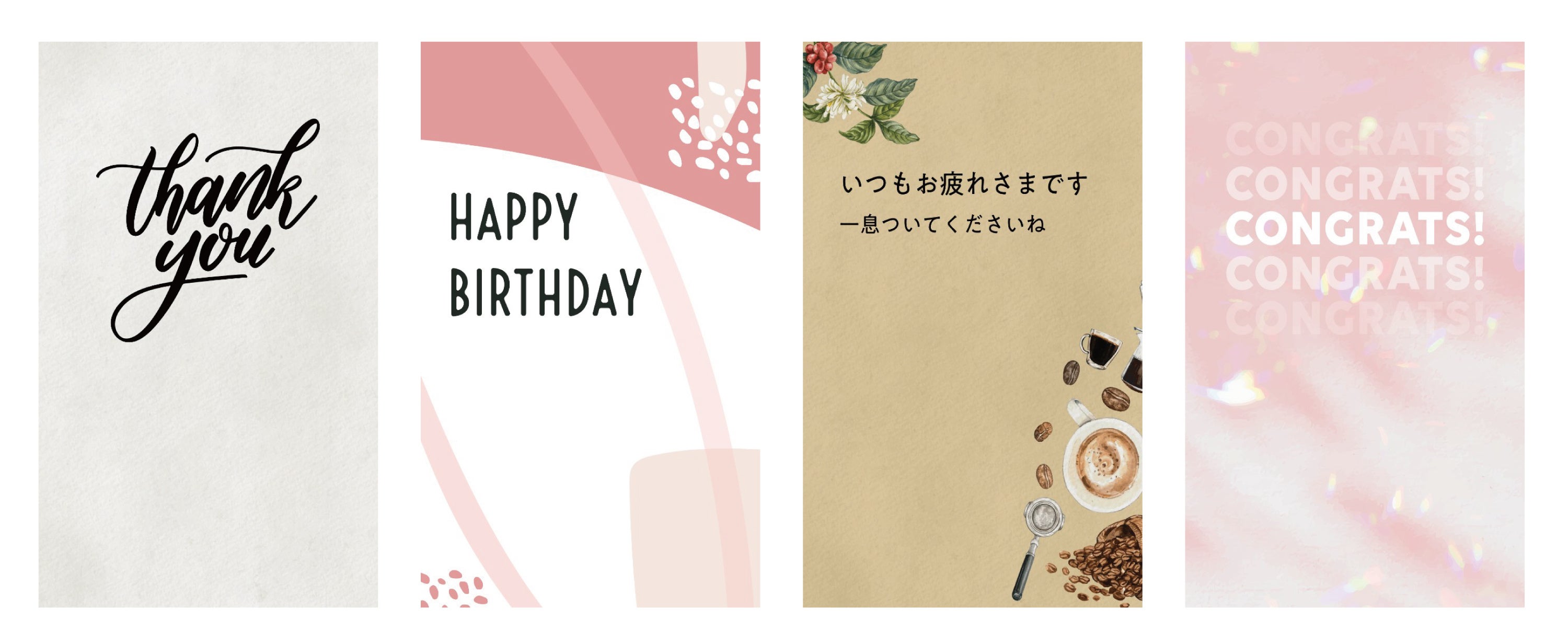 ラ・メゾン白金のオリジナルデザインカードにのせて、お祝いや感謝の気持ちをすぐにお相手様へお送りできます。
