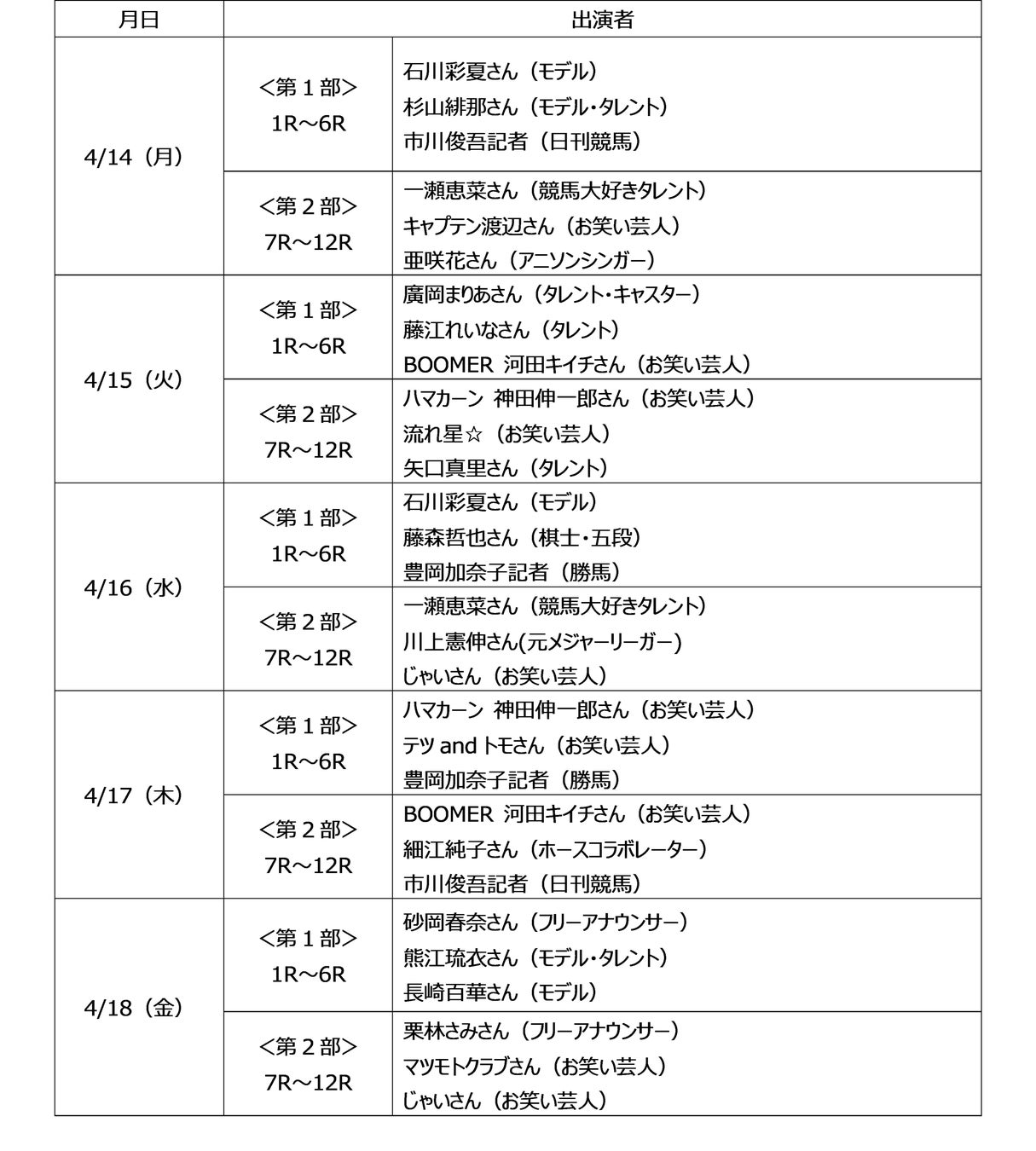 4月16日(水)、タレントの岡部玲子さん、お笑い芸人のキャプテン渡辺さん、東京スポーツ記者の三嶋まりえさんが東京スプリント(JpnⅢ)の予想に挑戦する「スペシャル予想トークステージ東京スプリント」を実施します。中央・地方からダート界の精鋭が集結する「東京スプリント(JpnⅢ)」をどう予想するか!?当日は、ぜひトゥインクルステージにお越しください。