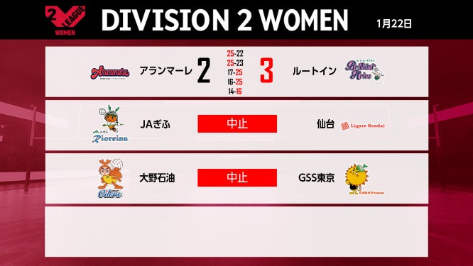 V2男子・上位3チームは快勝!V2女子・上位対決は大逆転でルートインに軍配!