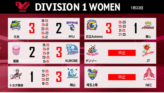 【バレー/Vリーグ】V1男子・第3セット35点の大激戦からジェイテクトが逆転勝利。V1女子・ホームの日立Astemoが2位東レの8連勝を止め大金星