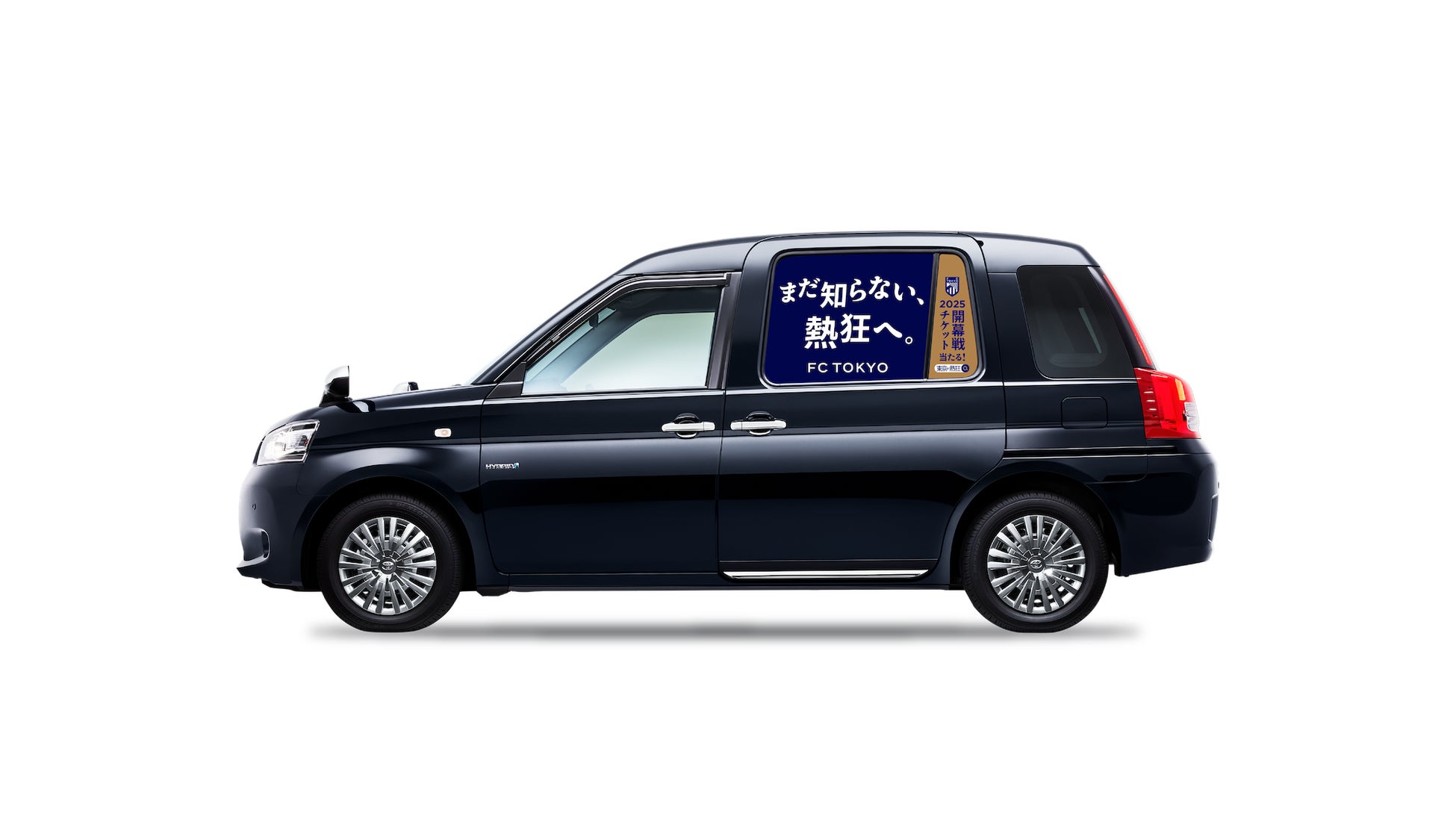「FC東京 熱狂タクシー」は、チームの情熱と選手の新たな挑戦への想いを乗せた、2025シーズンの開幕を盛り上げる特別企画です。タクシー100台のうち5台の車両は、今回のプロモーションメッセージである「まだ知らない、熱狂へ。」というメッセージとクラブカラーである青と赤を車体にラッピング。残り95台は、モビリティ車窓メディア「Canvas」を活用し、タクシーの車窓にキービジュアルを投影します。