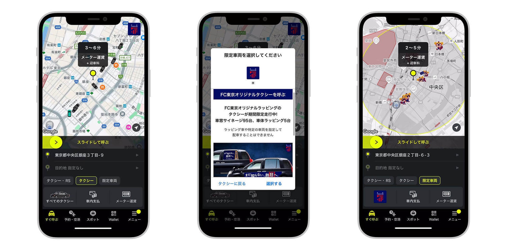 ポイント⑤:タクシーアプリ「S.RIDE」を通じて、「FC東京 熱狂タクシー」の指定配車が可能 ※特定の車両指定は不可