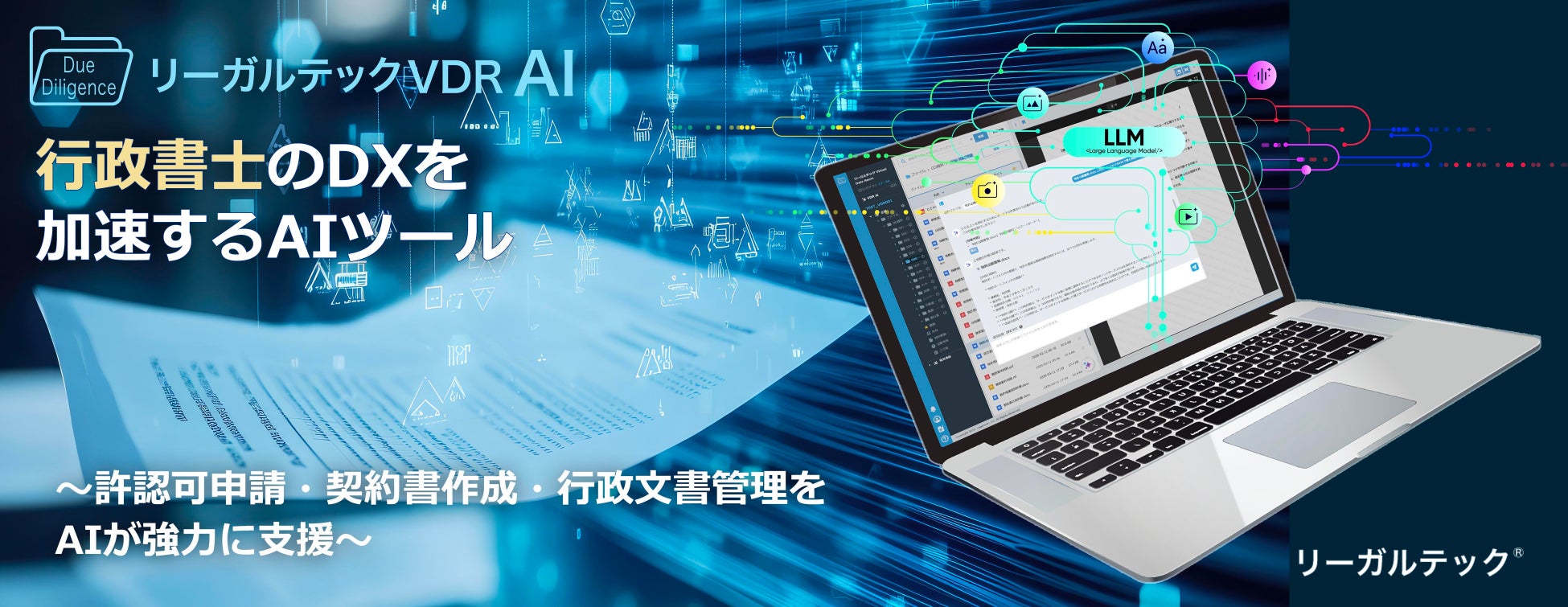 リーガルテック社、行政書士業務のDXを加速するAIツールが登場「リーガルテックVDR」にLLM生成AI「AI孔明」を統合