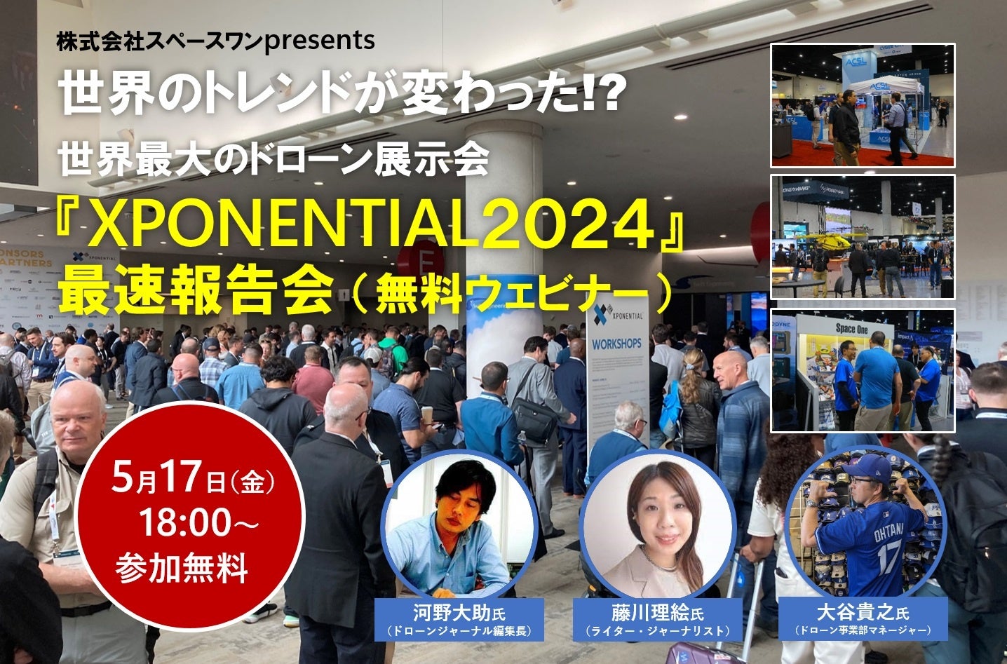 株式会社スペースワン(代表取締役:小林康宏)は、5月17日(金)18時より、世界最大のドローン展示会『XPONENTIAL2024』の最速報告会をオンラインセミナー形式で開催します。