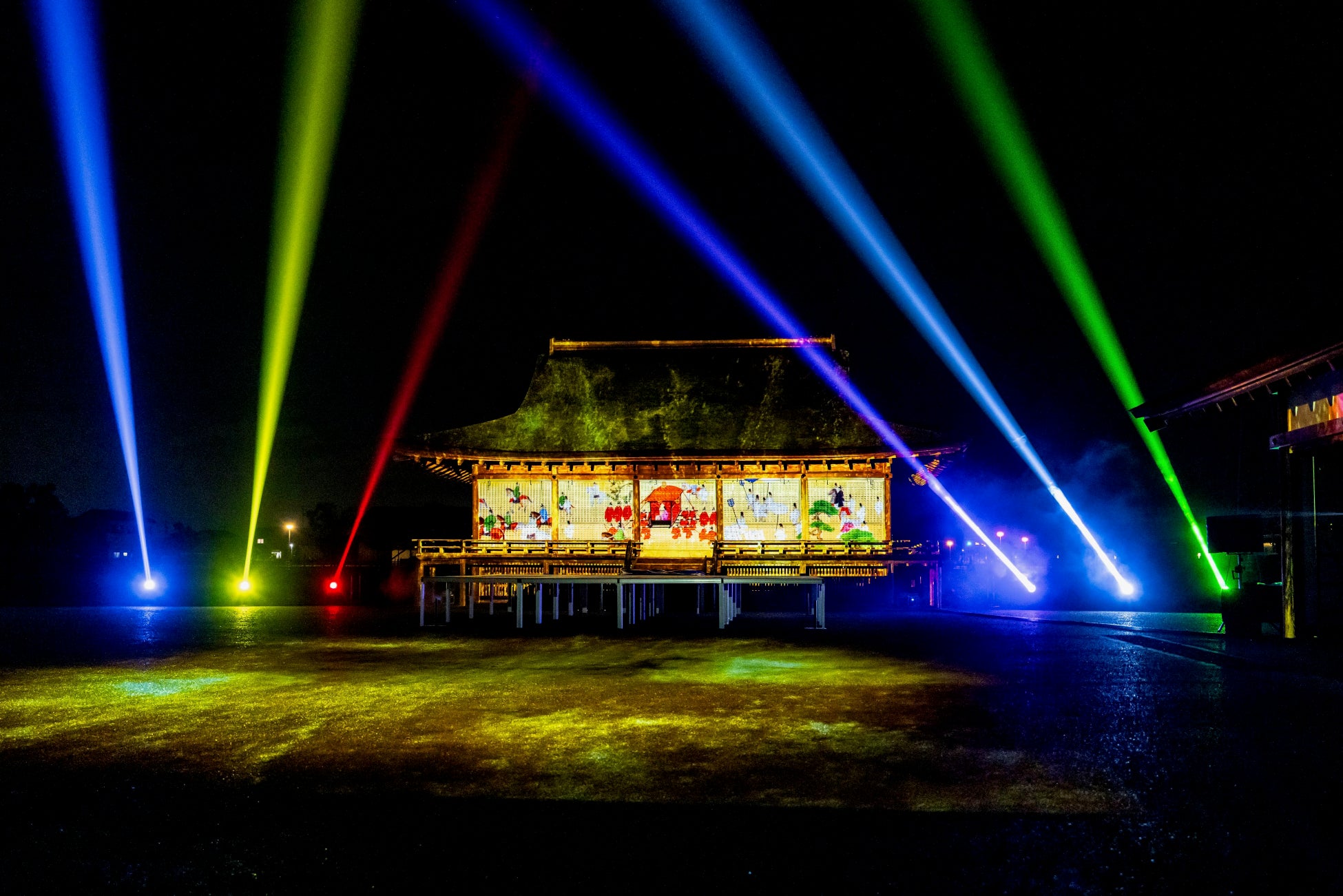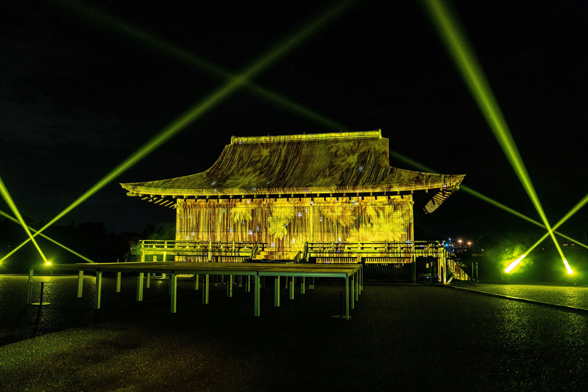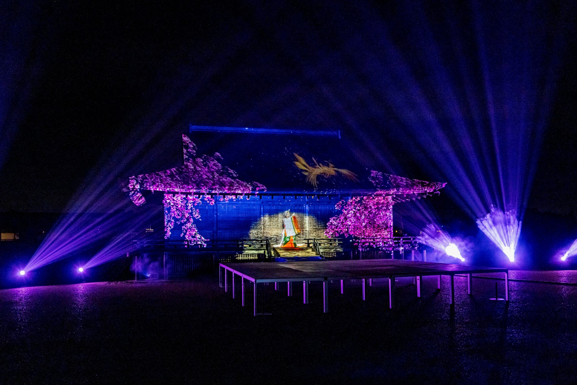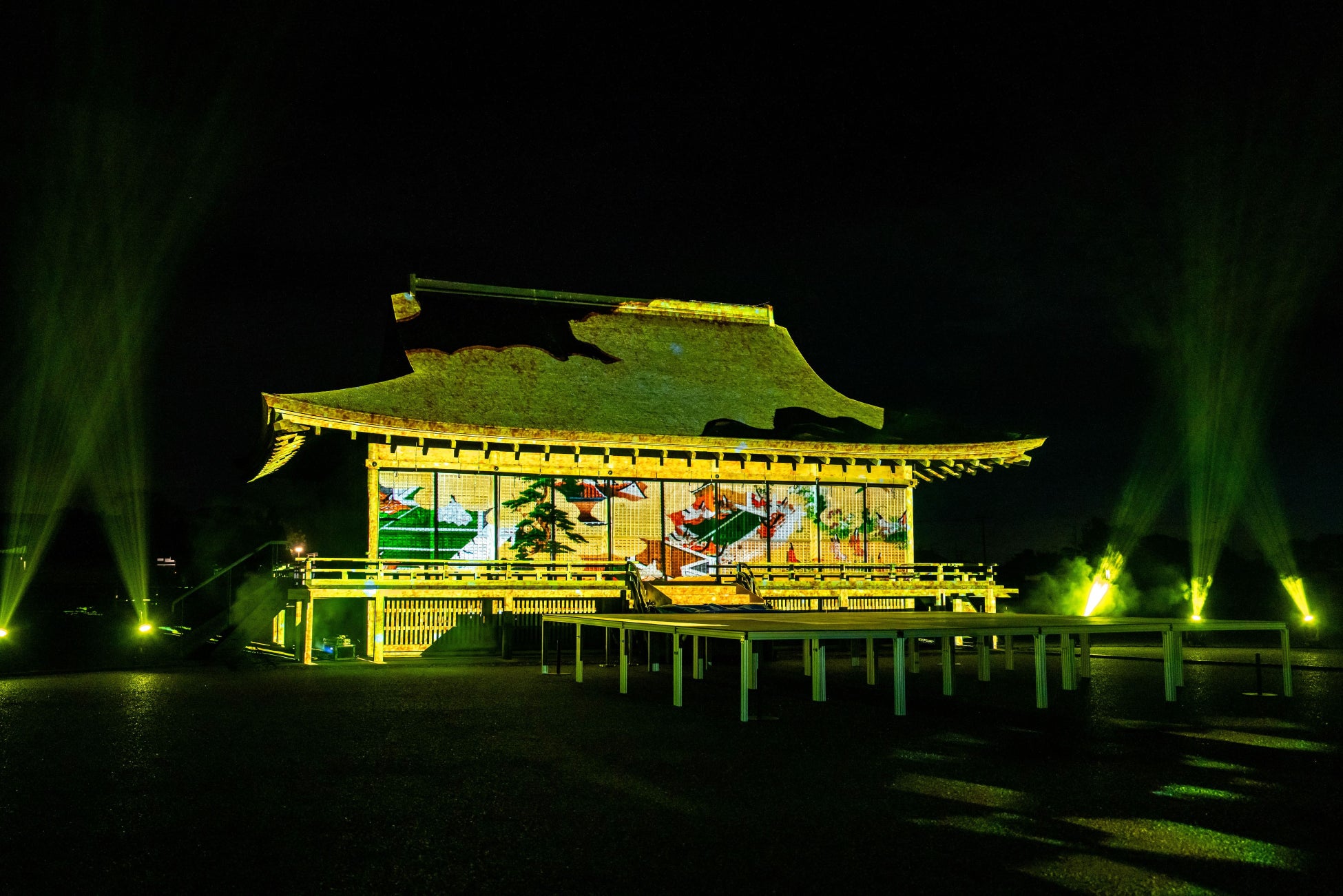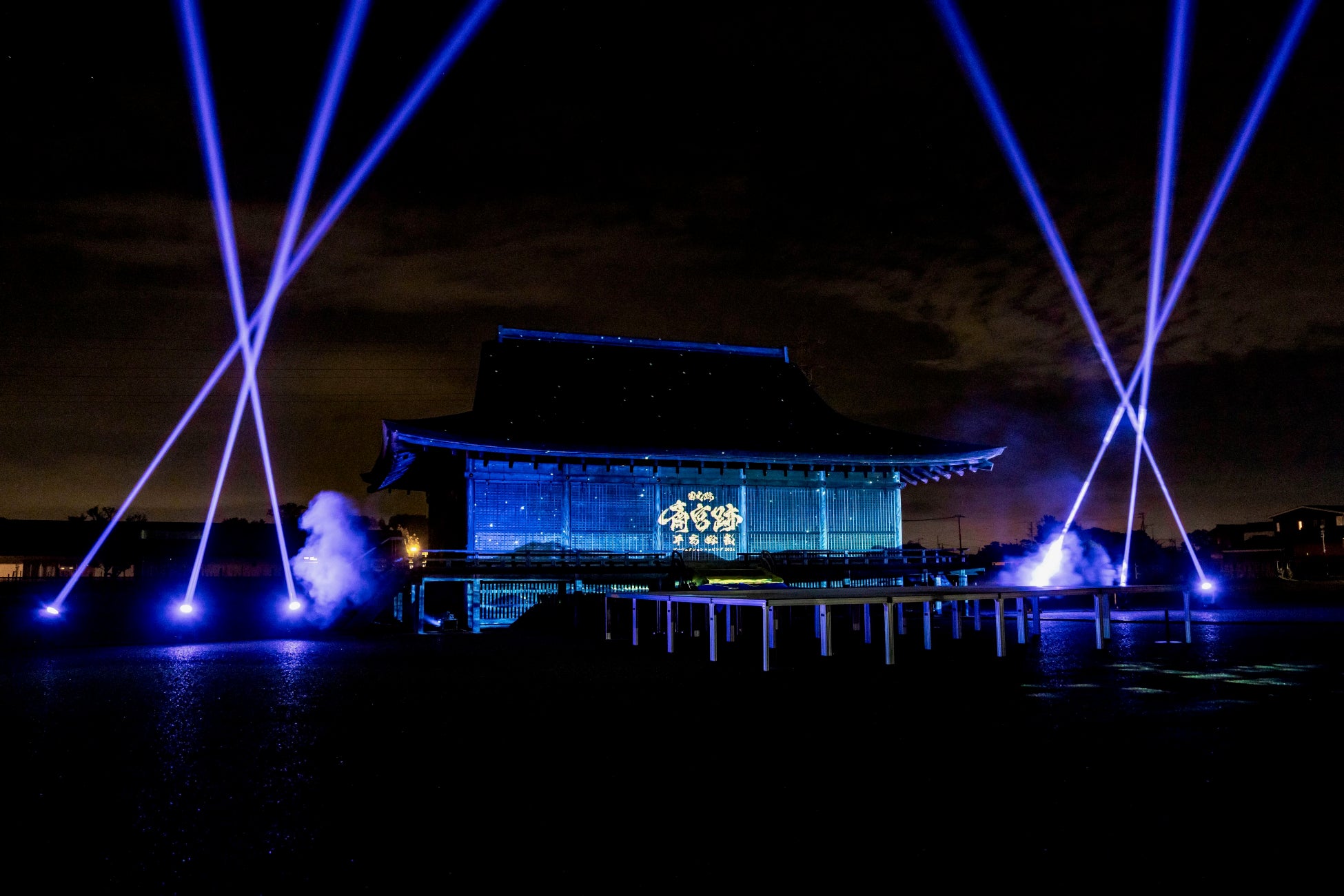 国史跡斎宮跡にある「さいくう平安の杜」の正殿・東脇殿・西脇殿に「斎王群行絵巻」「源氏物語絵巻」「十二単」など斎宮ゆかりの文化芸術をモチーフとした荘厳なプロジェクションマッピング映像を投影。