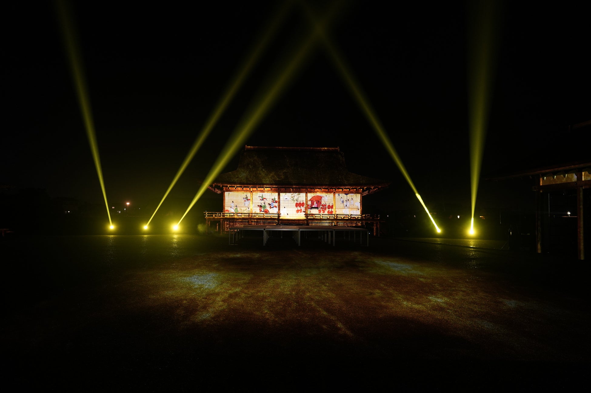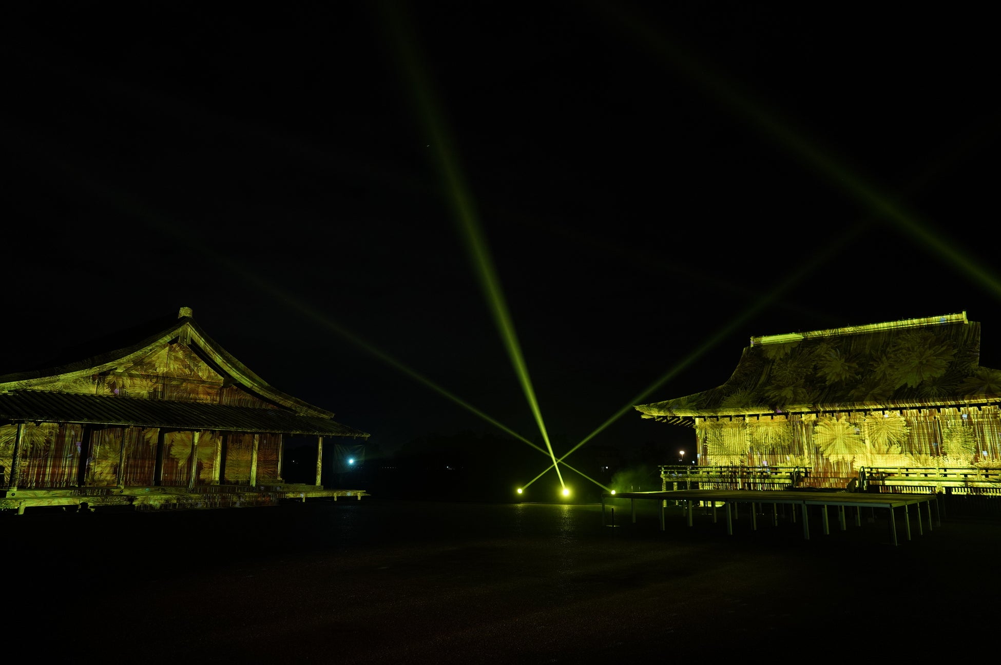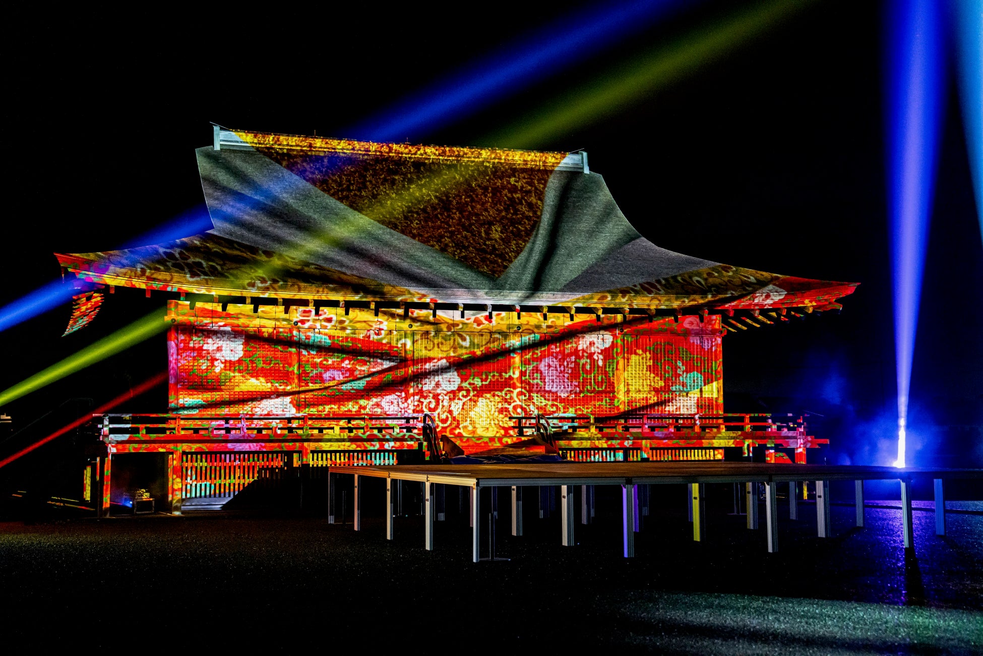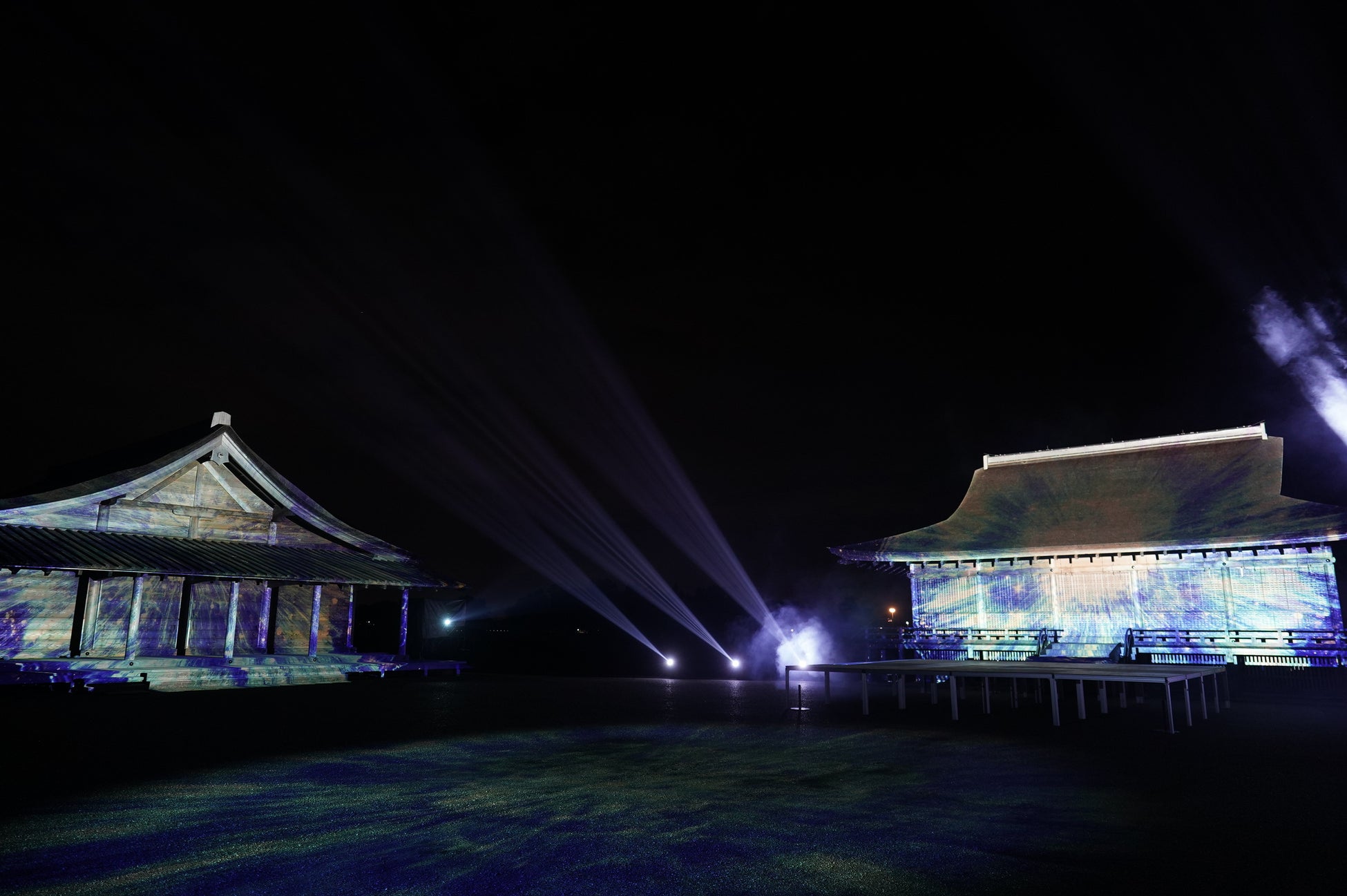 国史跡斎宮跡にある「さいくう平安の杜」の正殿・東脇殿・西脇殿に「斎王群行絵巻」「源氏物語絵巻」「十二単」など斎宮ゆかりの文化芸術をモチーフとした荘厳なプロジェクションマッピング映像を投影。