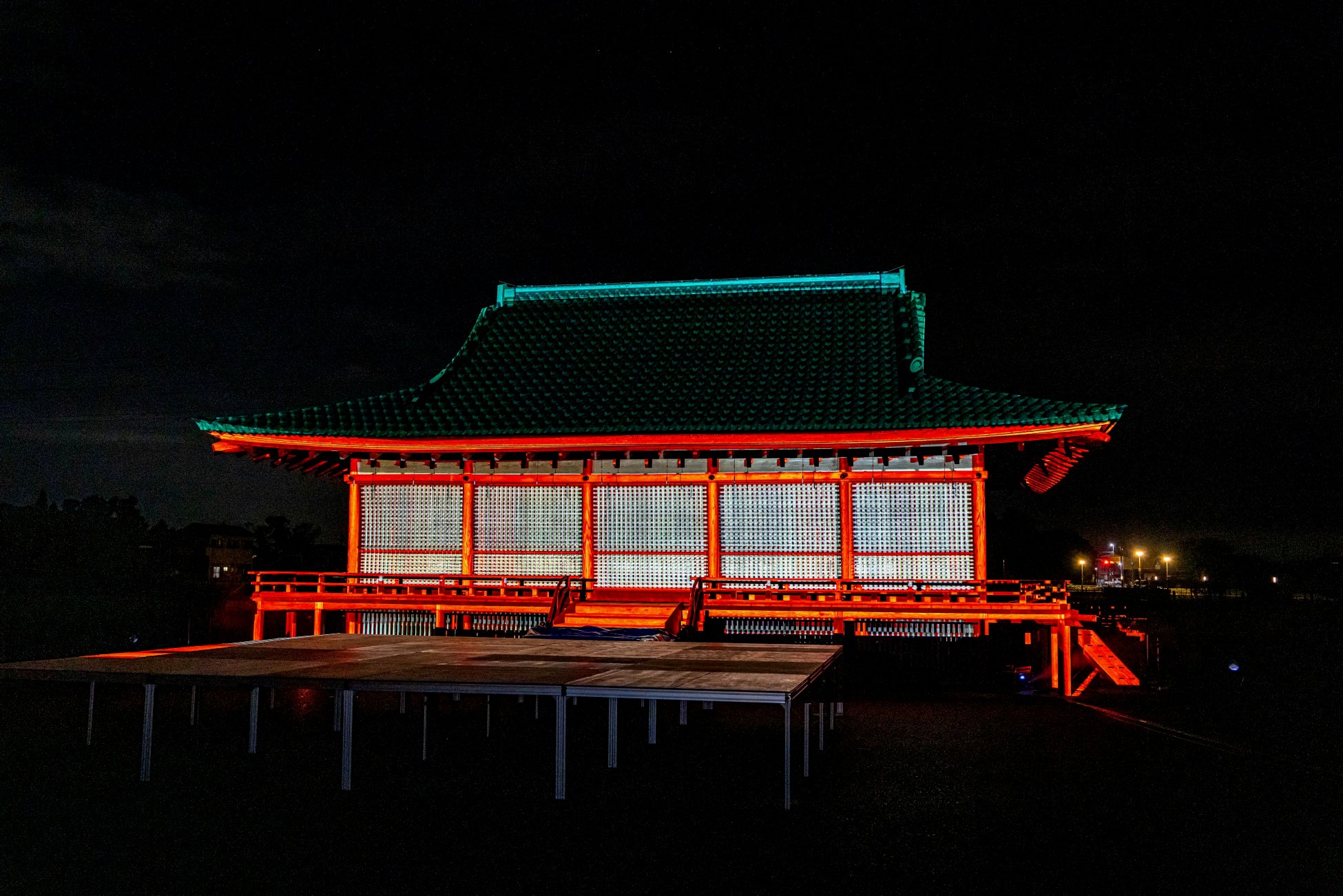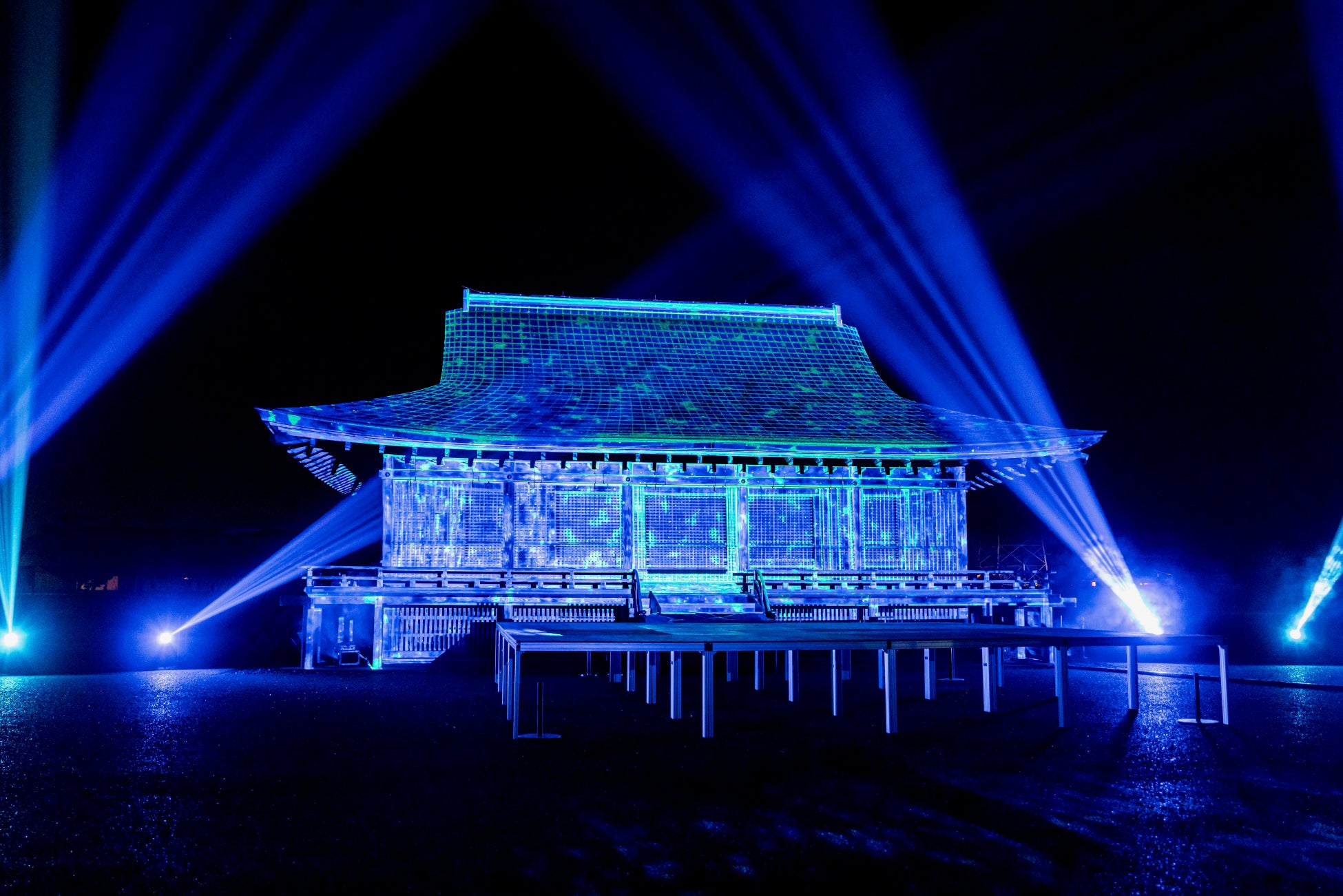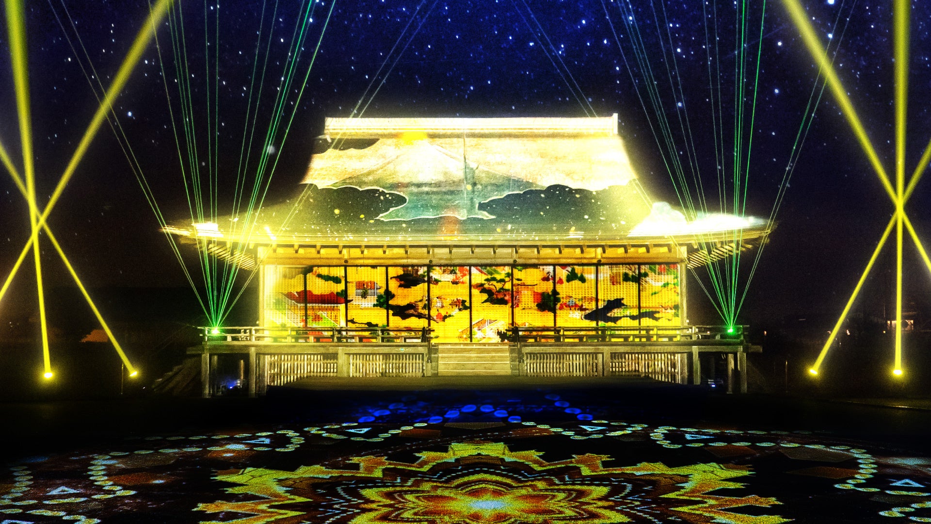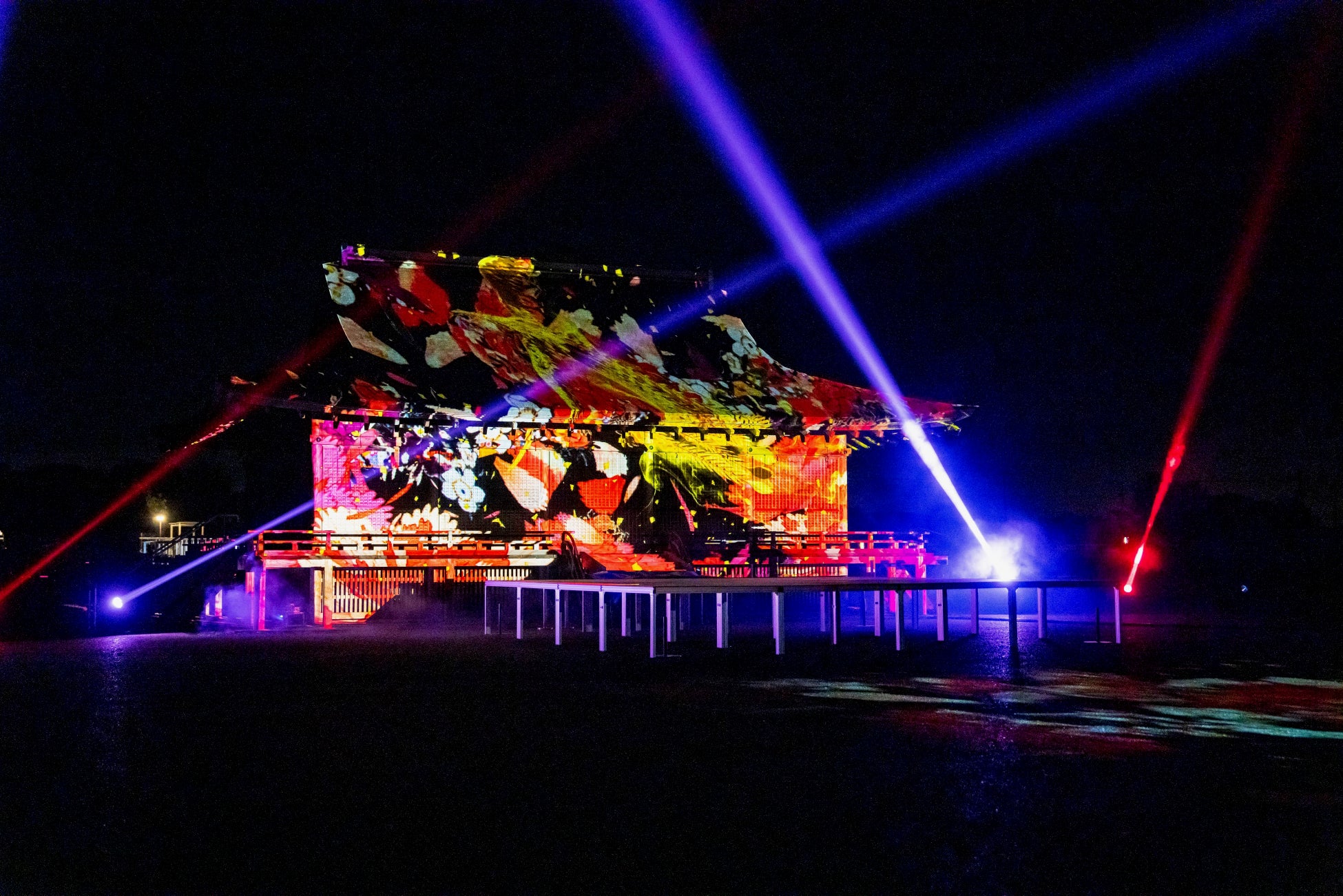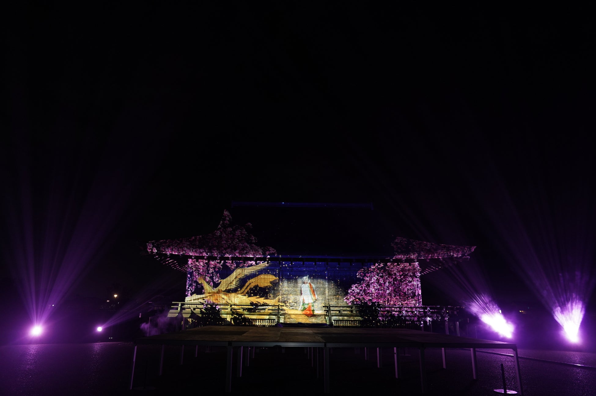 国史跡斎宮跡にある「さいくう平安の杜」の正殿・東脇殿・西脇殿に「斎王群行絵巻」「源氏物語絵巻」「十二単」など斎宮ゆかりの文化芸術をモチーフとした荘厳なプロジェクションマッピング映像を投影。