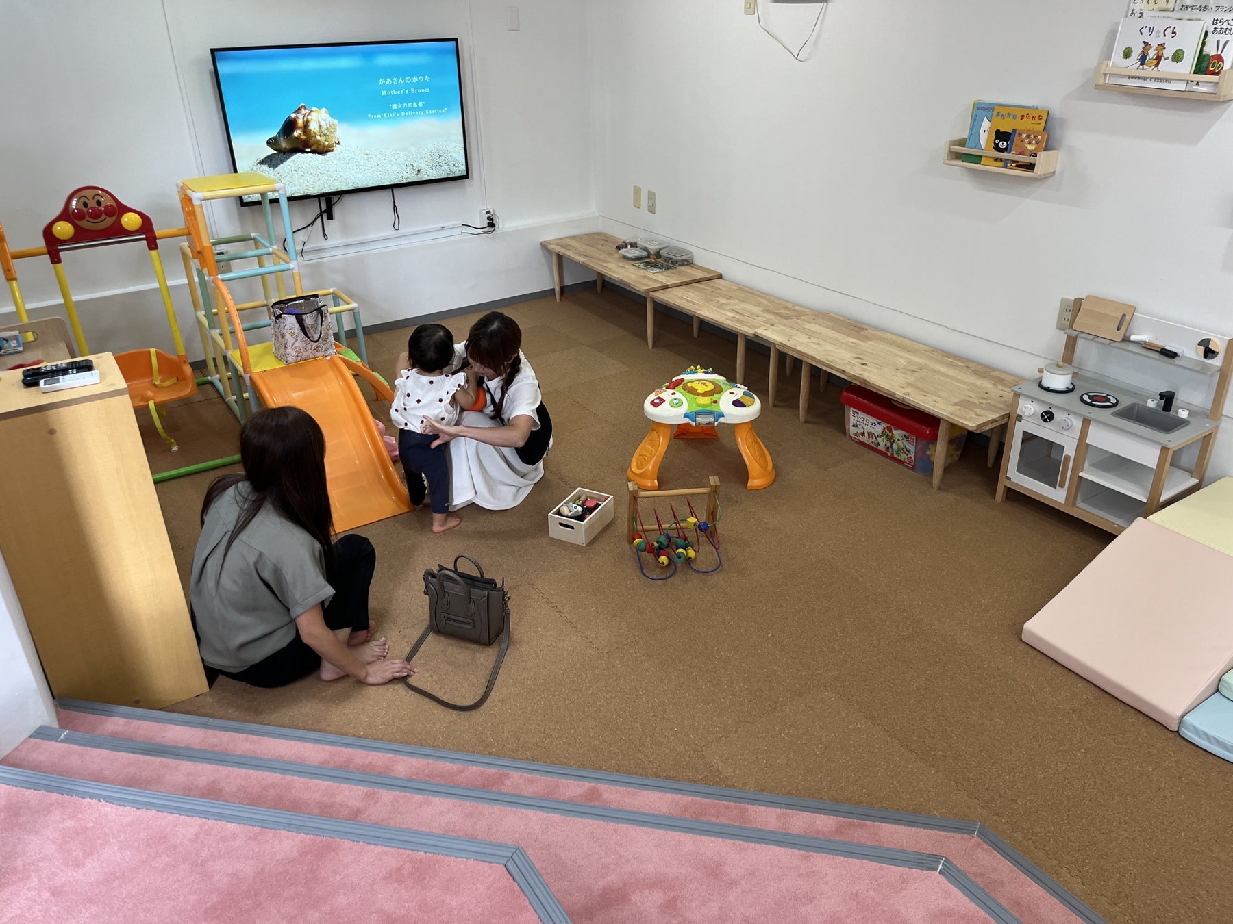 小さなお子様連れでも気兼ねなく過ごせるよう、店内にはキッズスペース「SAKULAND」を併設しています。カラフルな滑り台や木製のおままごとキッチンなど、おもちゃが豊富に揃い、子どもたちがのびのび遊べる安全な空間です。