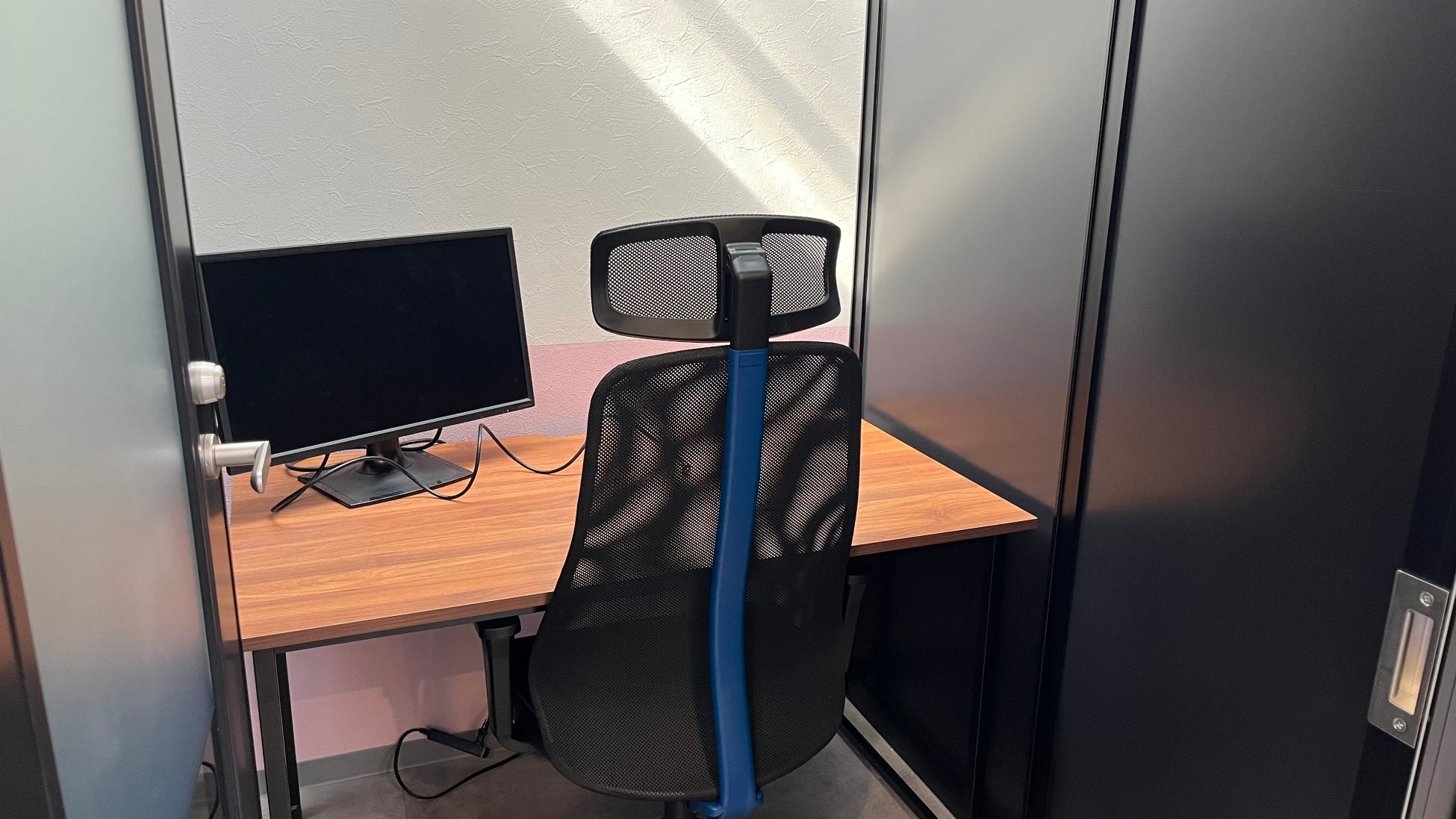 集中して仕事や勉強ができるパーソナルスペースも完備。遮音性のある個室空間で周囲を気にせず話せるため、急なビデオ会議や機密性の高い通話でも安心です。月額のプライベート会員もございます。