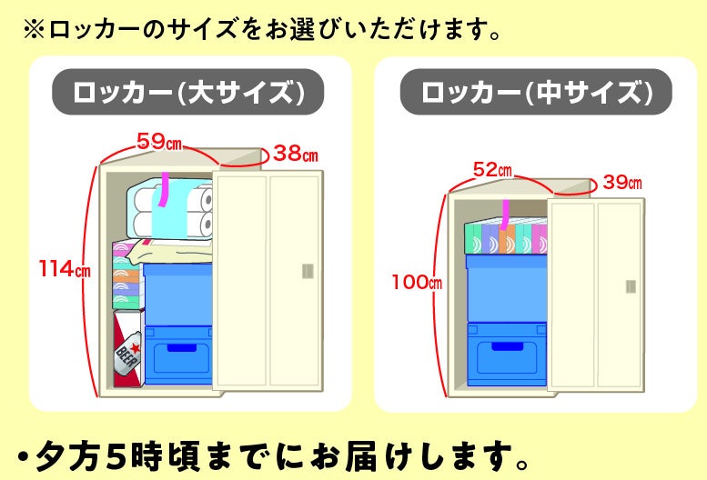 ・戸建の場合、敷地内に商品を保管する鍵付きロッカー(保管庫)を設置していただける方 ※鍵付きロッカーの大きさ(2種類)