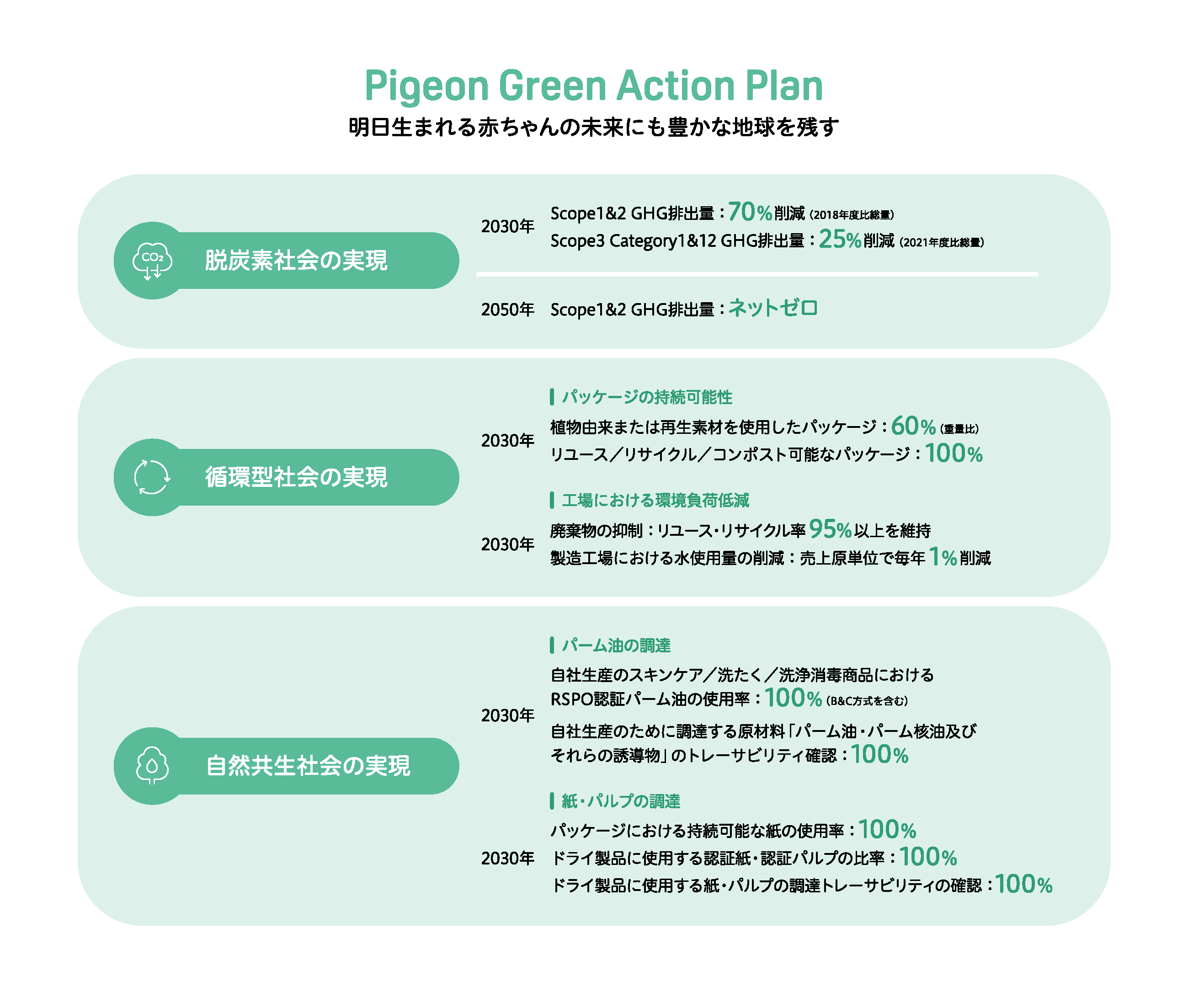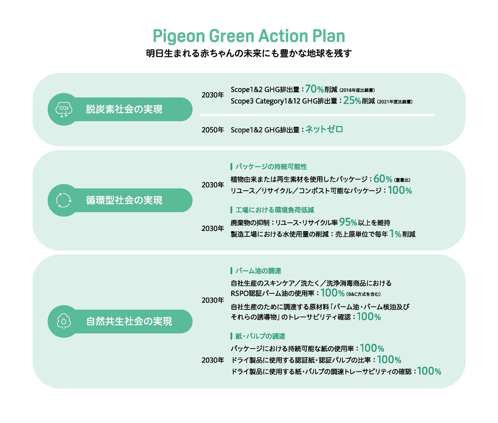 ▼ピジョンの中長期環境目標「Pigeon Green Action Plan」について