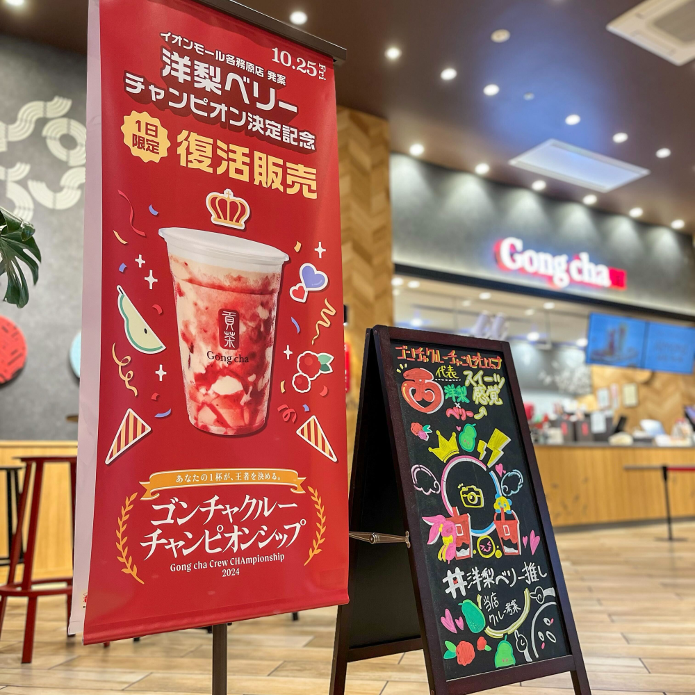 当日は、チャンピオンに輝いた「洋梨ベリー ミルクティー/フローズンティー」の企画クルーが在籍した※2岐阜県「イオンモール各務原店」を、ゴンチャ ジャパン オフィススタッフ約15名が運営しました。
