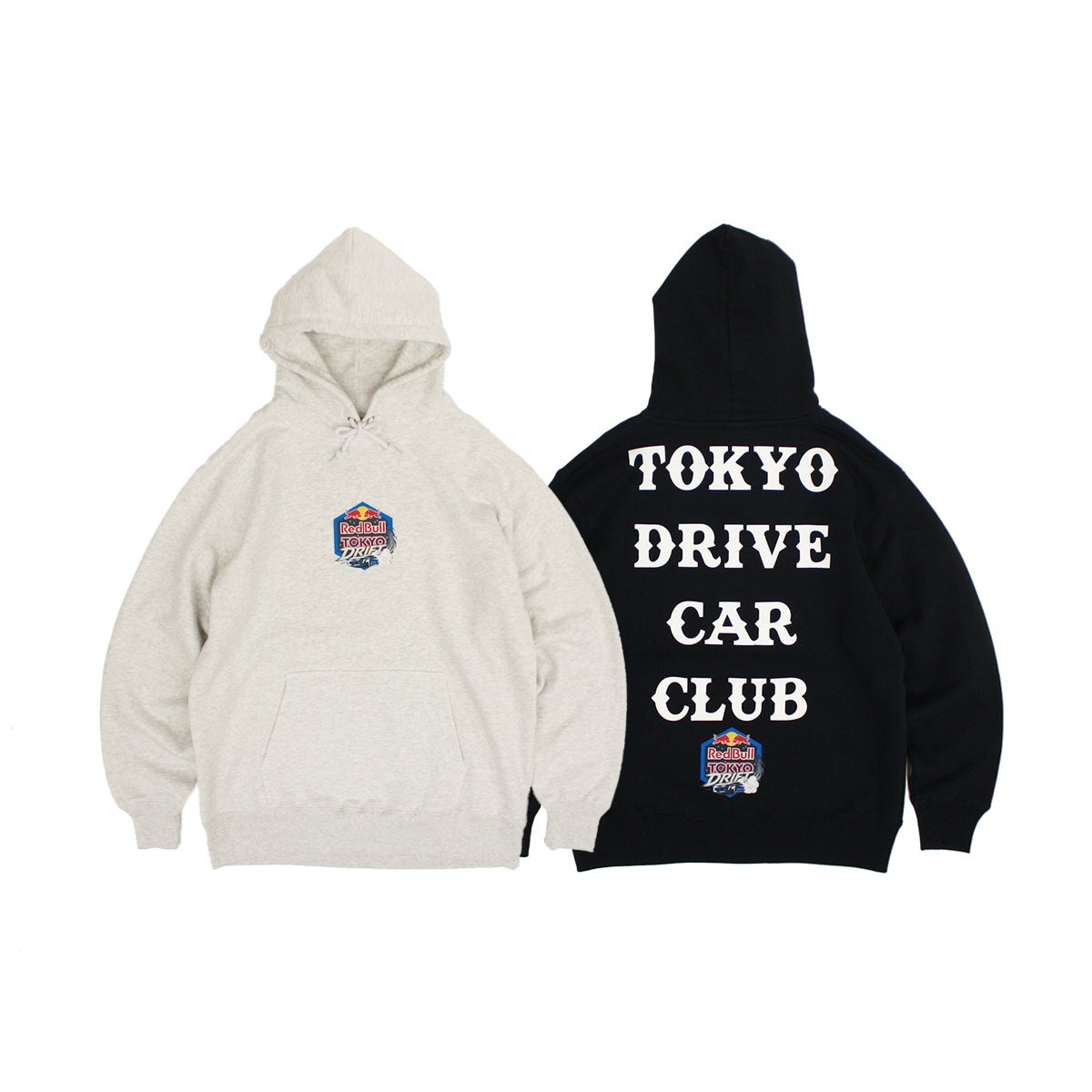 今回のコラボレーションでは、Tシャツ、ロンT、フーディ、スタジャンの全4型を展開。各アイテムには「Red Bull Tokyo Drift」の入場チケットおよびTokyo Drive Car Clubのステッカーが付属します。
