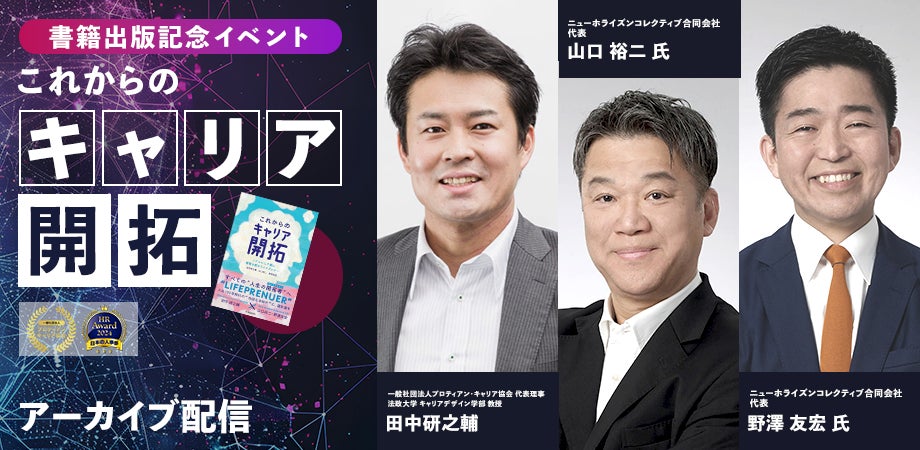 このたび、6月11日(水)に開催された、当協会 代表理事/法政大学キャリアデザイン学部 教授 田中研之輔の新刊『これからのキャリア開拓』の出版記念イベント「これからのキャリア開拓」のアーカイブ配信を開始いたしました。