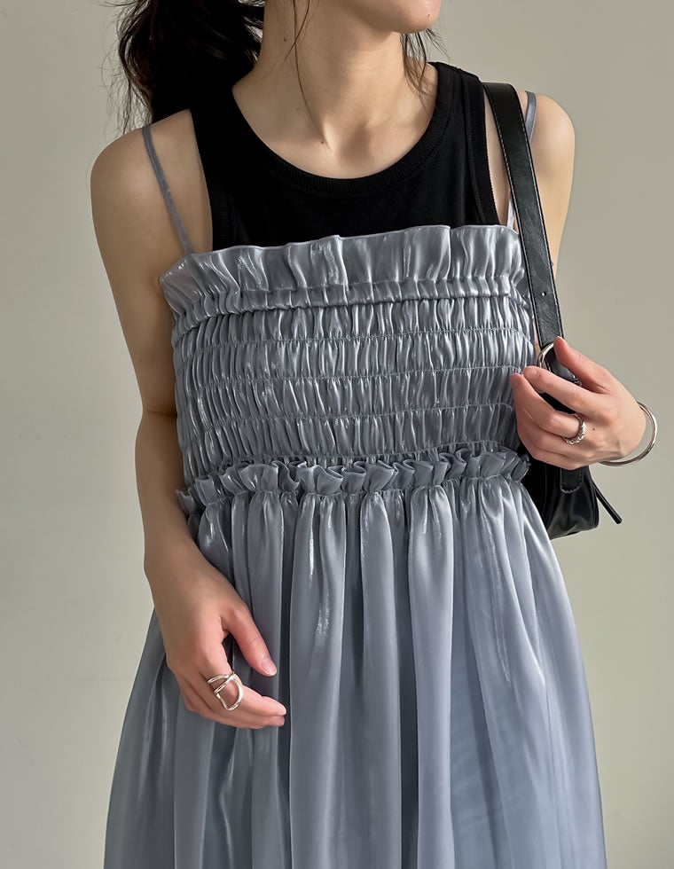 商品名:ラメオーガンジーシャーリングキャミワンピース