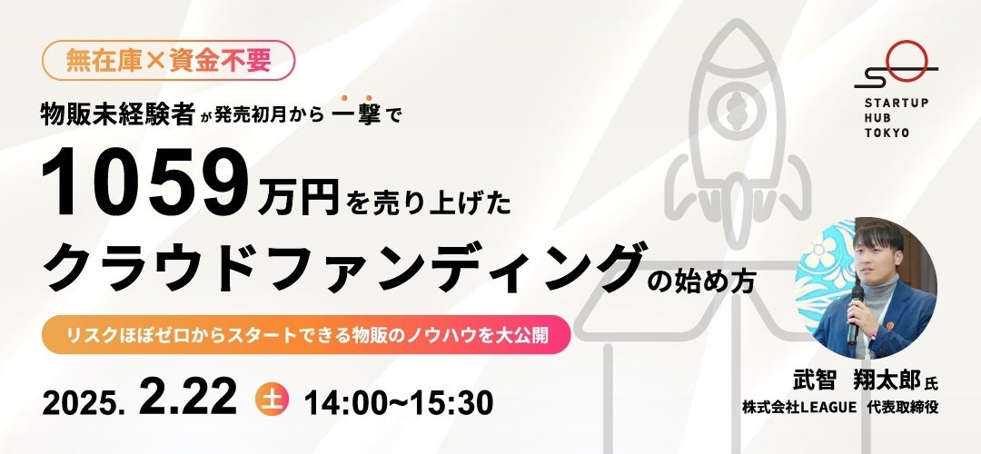 株式会社LEAGUE(本社:東京都武蔵野市)は、新しいビジネスモデルを探している経営者や副業を検討中の方々に向けた無料セミナー『【無在庫✖資金不要】物販未経験者が発売初月から一撃で1059万円を売り上げたクラウドファンディングの始め方』を2025年2月22日(土)、TOKYO創業ステーションにて開催します。