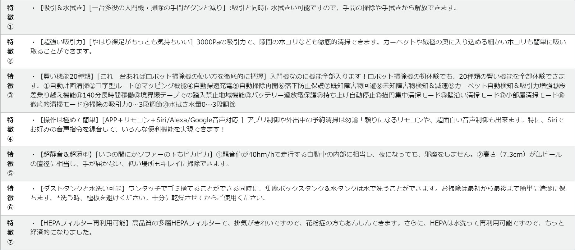 ➋ [Siri音声制御]:Siriでお好みの音声指令を録音して、以下の機能を実現できます:○自動掃除、○集中清掃、○壁沿い掃除、○一時停止○、吸引力1-3段調節、○自動充電。