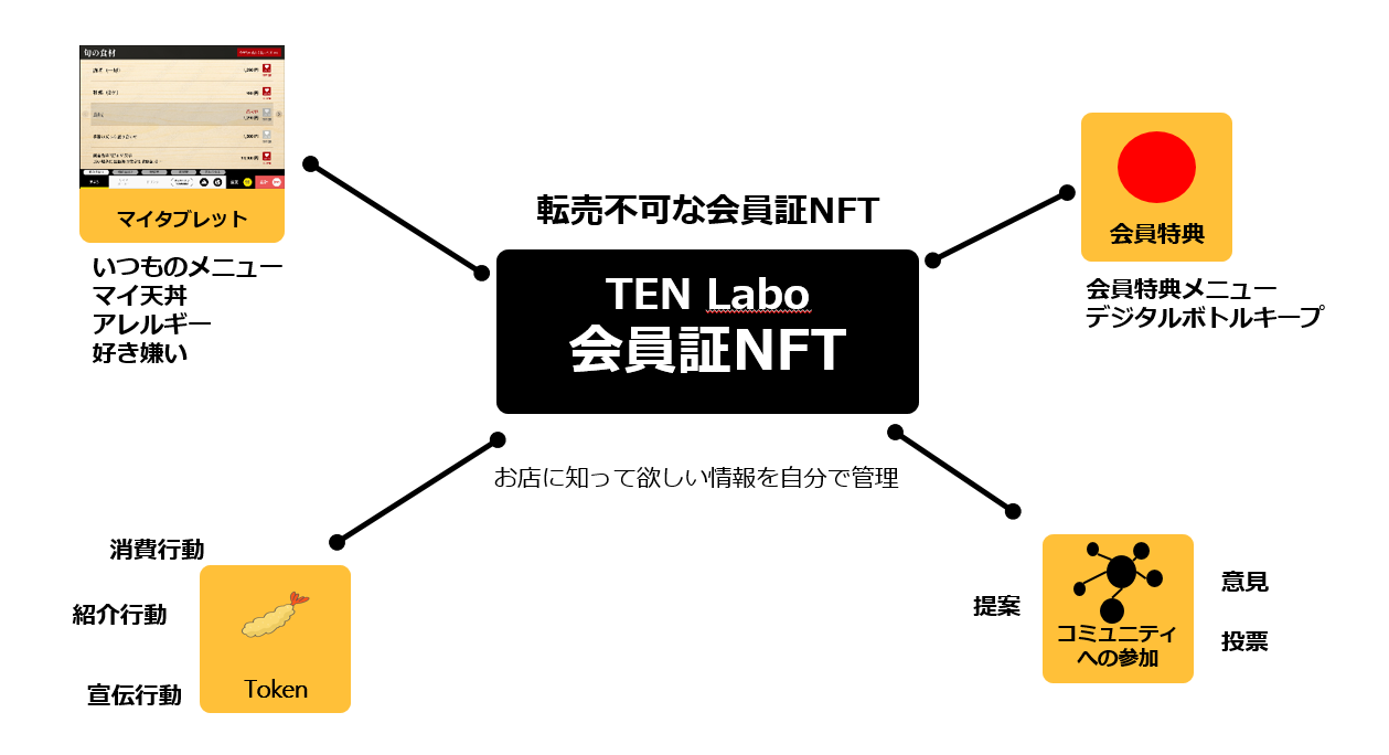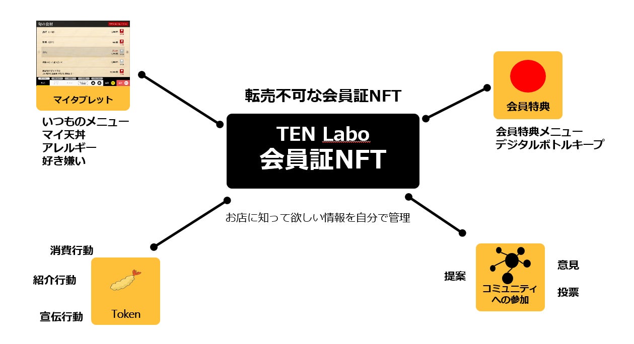「TEN Labo」では、このビジネスモデルを通じて、web3の技術と店舗のタブレットオーダーシステム、TEN Labo のコミュニティを連動することによって、「お客様、店舗・従業員、生産者」をつなぎ、外食産業の構造的な課題解決と「美味しい料理」と「楽しい空間」を提供する等、本源的な価値を向上させていくことを目指してまいります。