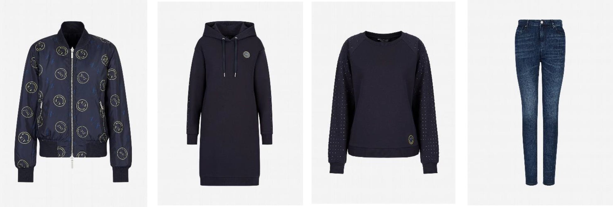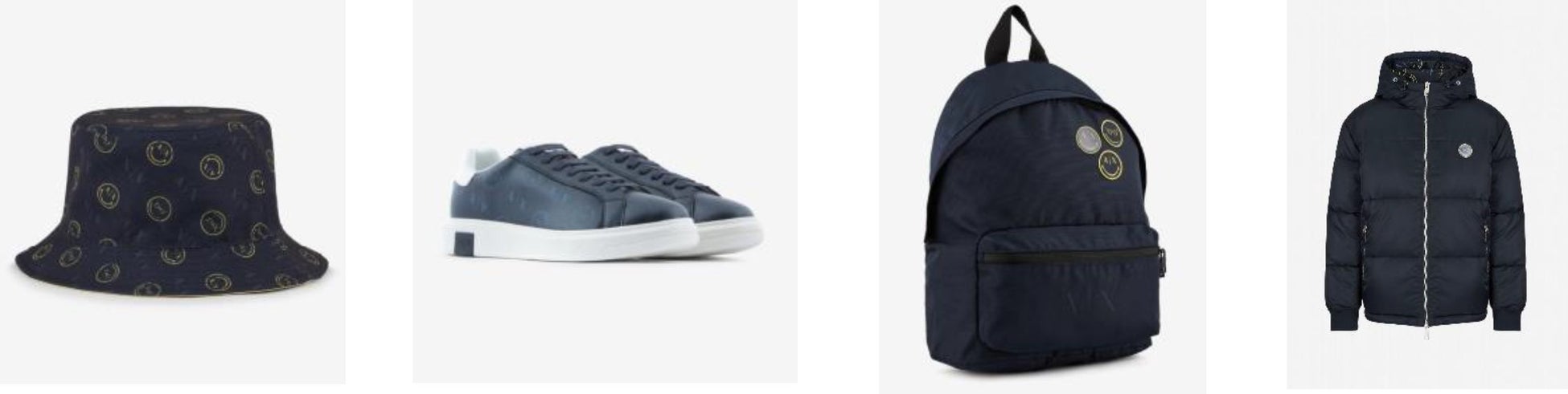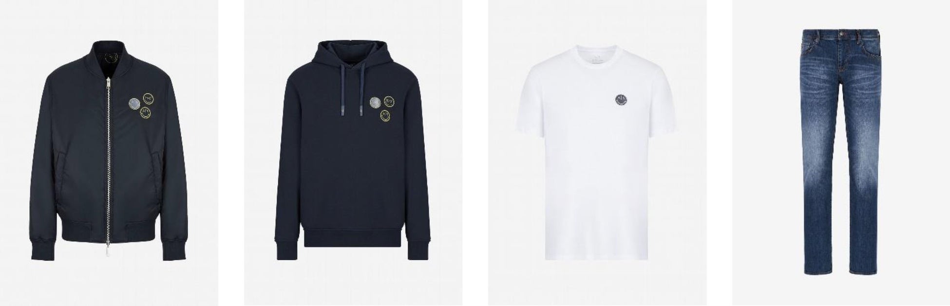 コレクションは、帽子や、靴下、手袋、バッグなど手に取りやすいアイテムはもちろんのこと、ボンバージャケットやデニム、パーカー、スウェット、TシャツなどA|Xを象徴するアイテムを中心に展開しています。また、多くのアイテムでオーガニックコットンやリサイクルナイロンなどのサステナブルな素材を使用しており、A|Xの環境配慮への意識も表しています。スマイリーワールド®が全面的にプリントされているアイテムや、ワッペンでポイントデザインされているものなど、合計レディース17型、メンズ15型のアイテムが10月1日から全世界に先駆けて日本で発売中です。