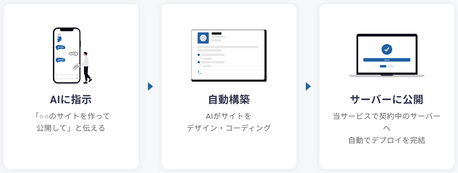 一方で、AIエージェントを活用してWebサイトを制作する場合でも、公開までには必要な設定や作業手順を整理しながら進める必要があり、特に制作やサーバー設定に不慣れな方にとっては負担となるケースがありました。