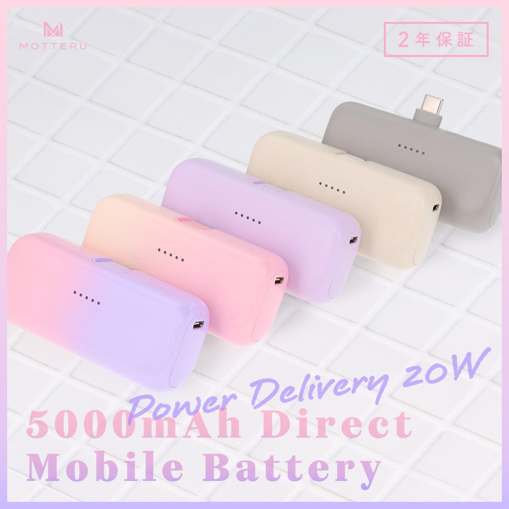 ダイレクトモバイルバッテリー 5,000mAh PD20W出力対応 USB-Cコネクタ 2台同時充電 PSE適合製品 全7色 2年保証(MOT-MB5002)