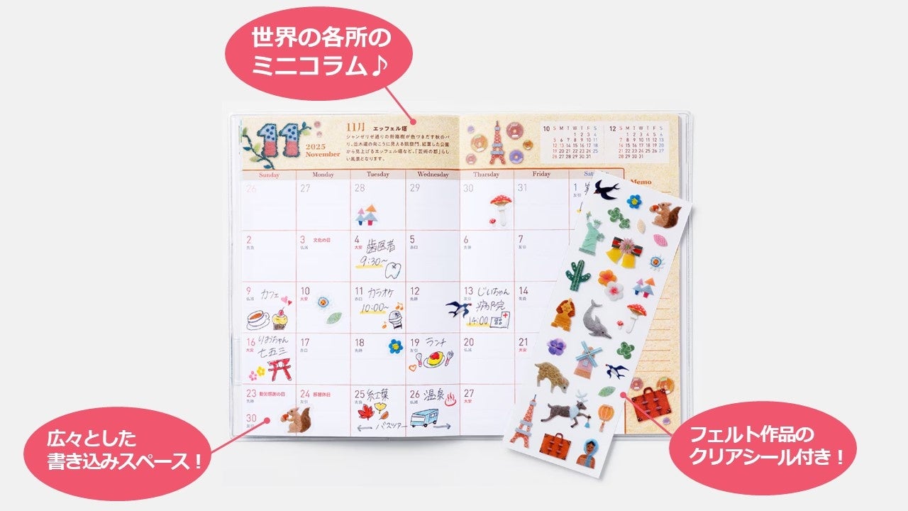 かわいいフェルト作品のクリアシールも付いているので、予定を書き込んだら自分好みにデコレーションができます♪