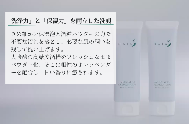 奥機能で生まれた酒粕と手仕事で炭を焼いている炭焼き職人の極上の菊炭を配合した洗顔フォームです。保湿効果の高い2種類の酒粕パウダーと、高品質な手焼き菊炭を高保湿石鹸にブレンドしました。能登の酒粕は糖度が高く、またNMF(天然保湿因子)を多く含んでいます。菊炭は多孔質性に優れ、しっかりと汚れを吸着するため、洗浄力が高くしっかり汚れを洗い流します。